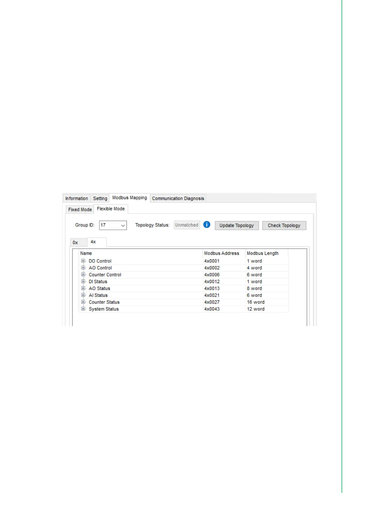 3.4.3 Modbus Addresses for Connected Modules (Flexible Mode)