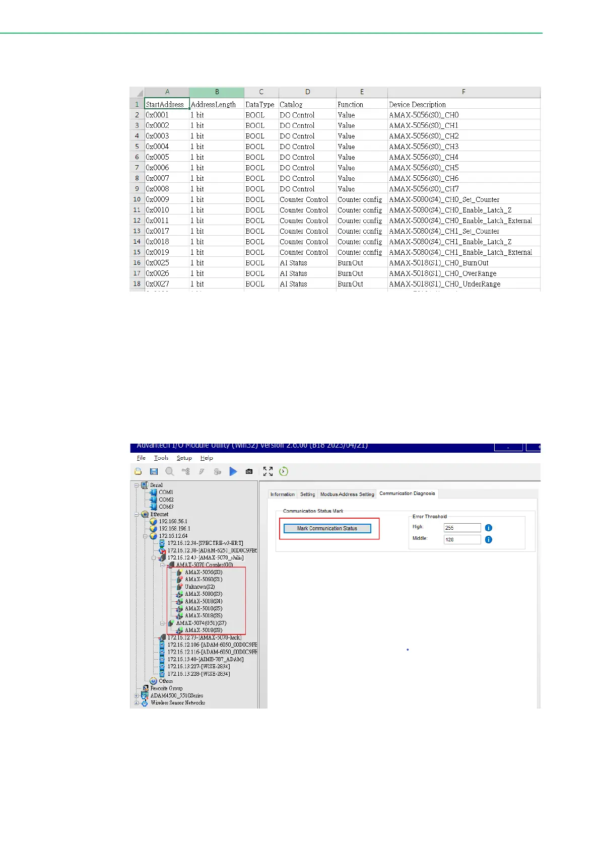 Figure 3.33 Modbus TCP Addresses and Modules List in CSV File (Flexible