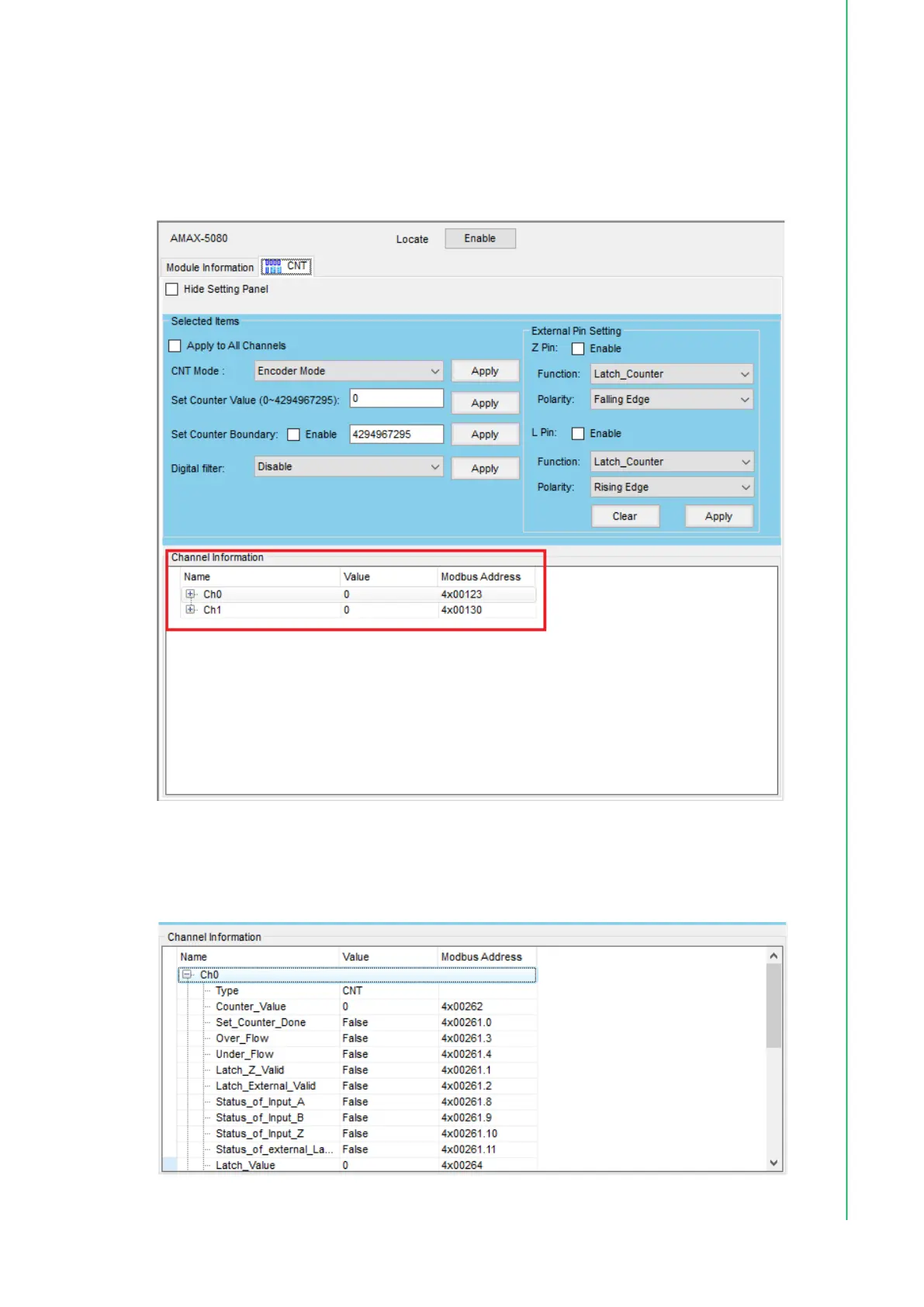 Figure 4.28 Counter/Encoder and Modbus Address Information