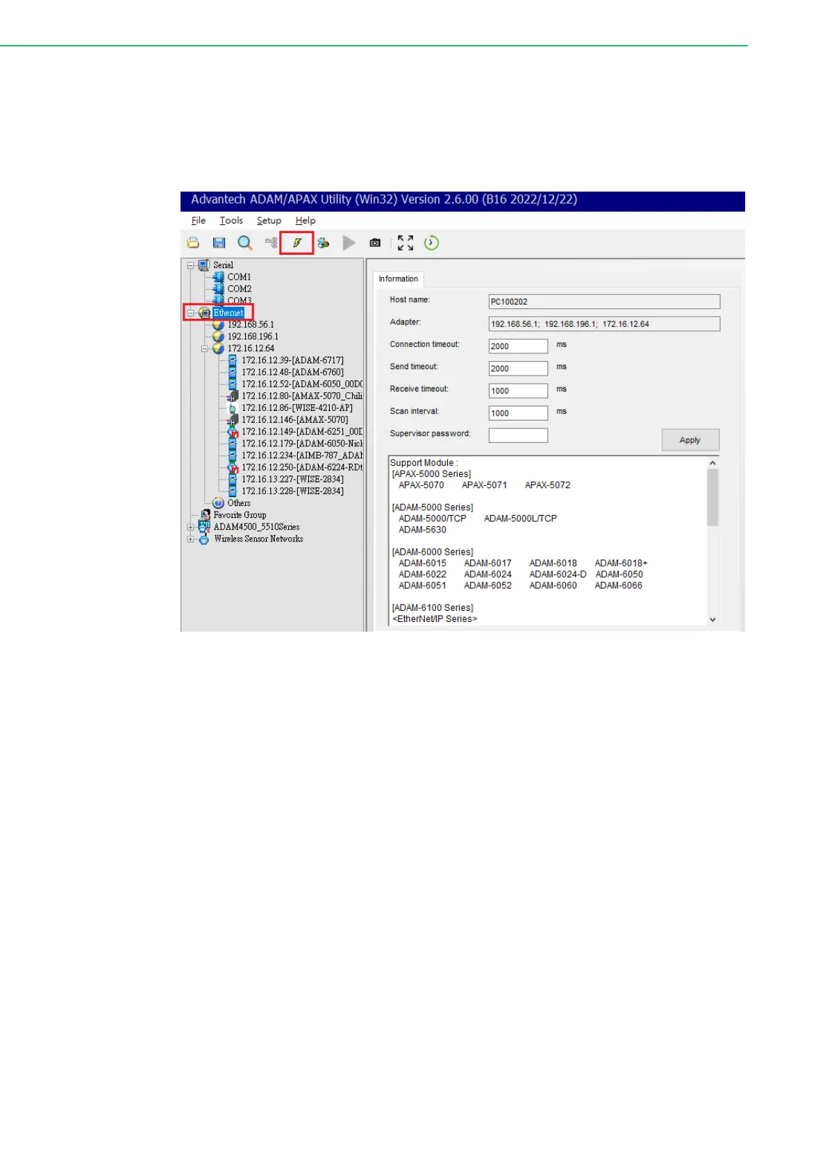 SubDevices via Modbus or ASCII command. After searching the Ethernet node, click