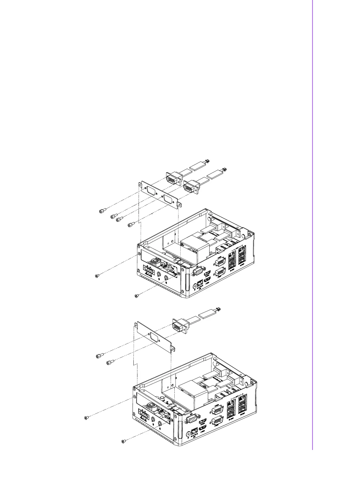 2. Replace with a 2-hole DB9 bracket (kit P/N: AMK-A0056), install four standoffs,