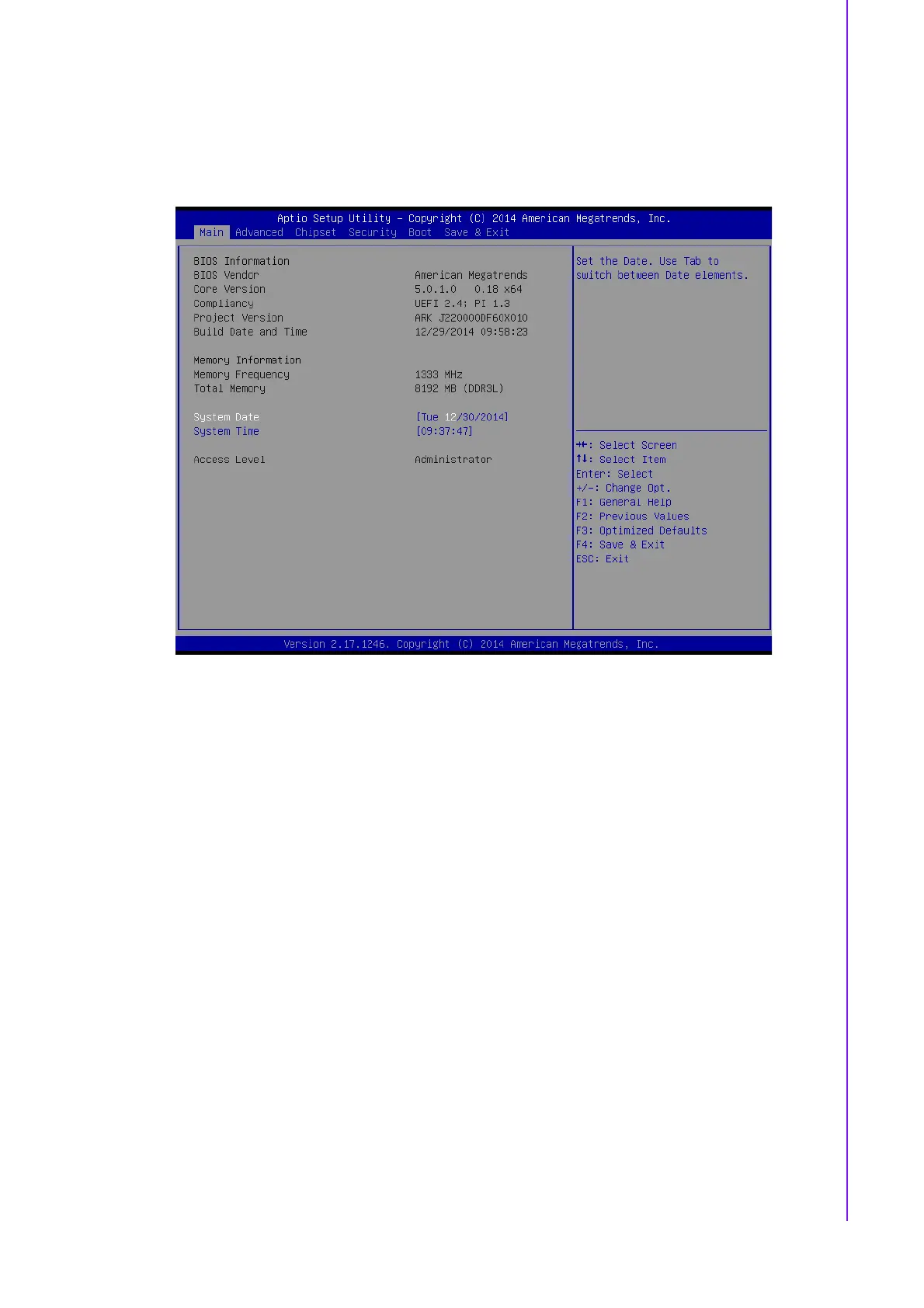 or System Date using the <Arrow> keys. Enter new values via the keyboard.
