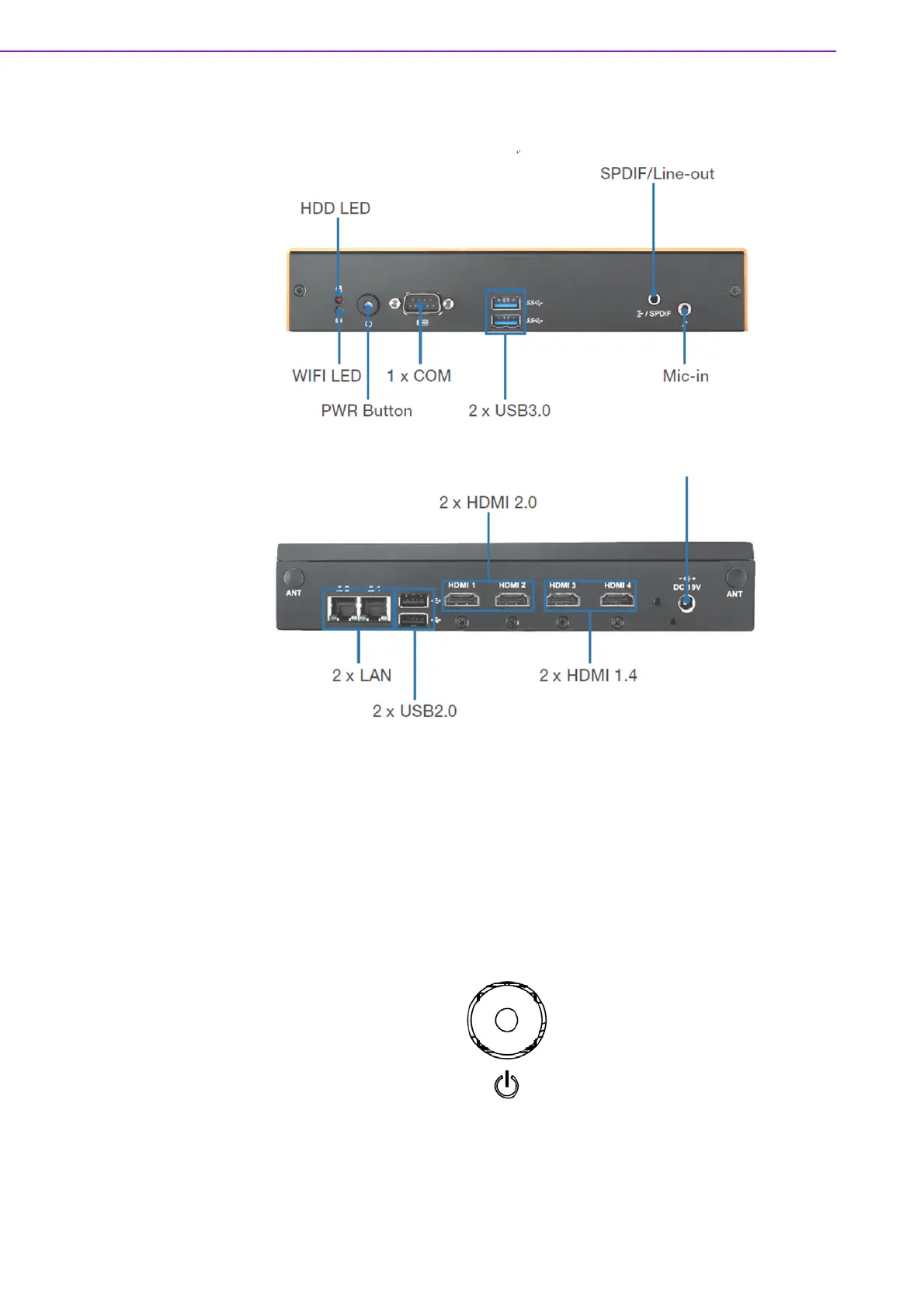 DS-580 has a power ON/OFF button on front side. Push this button to turn the sys-