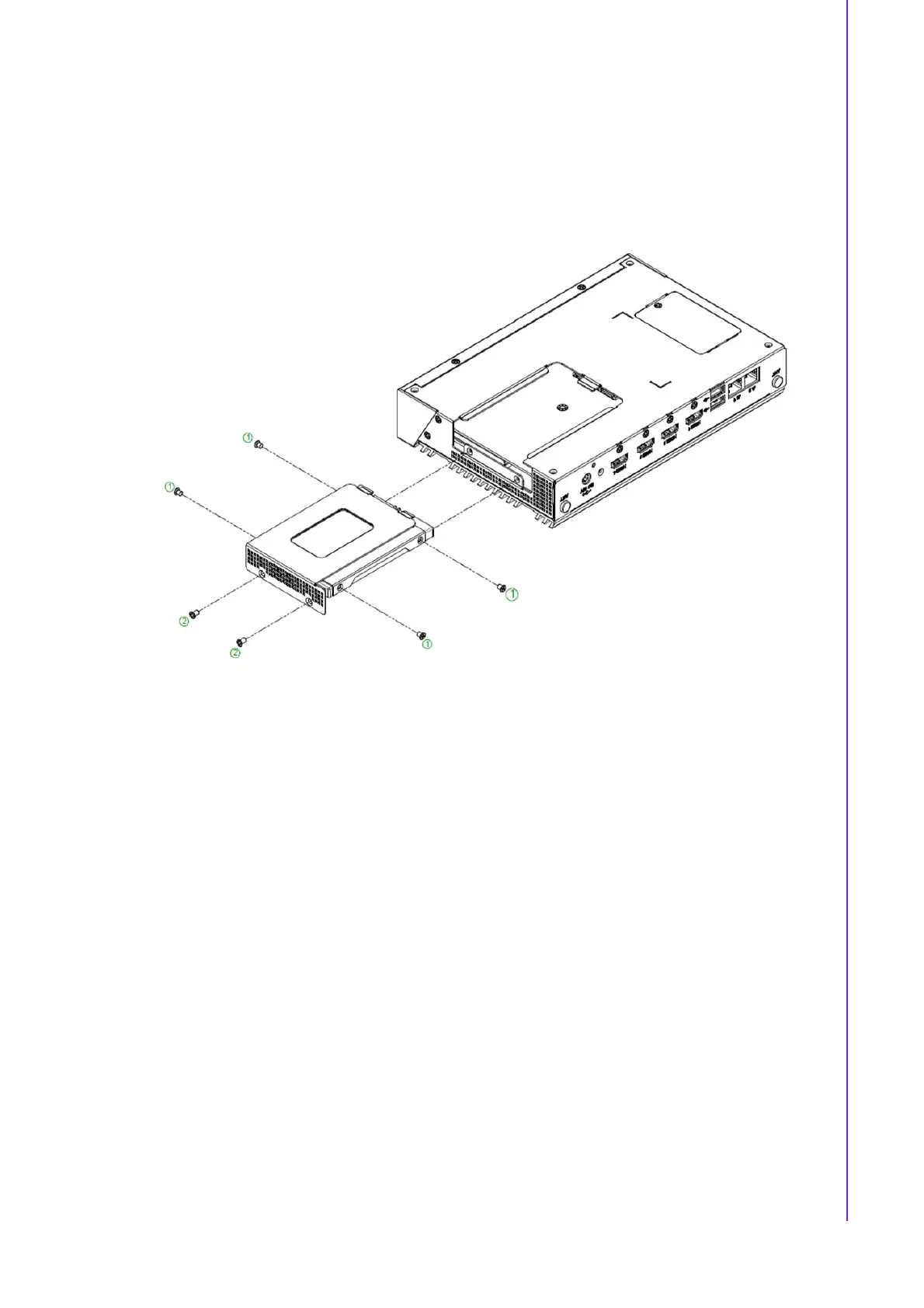 2. Fixing the 4 screws ① with HDD/SSD and storage bracket.