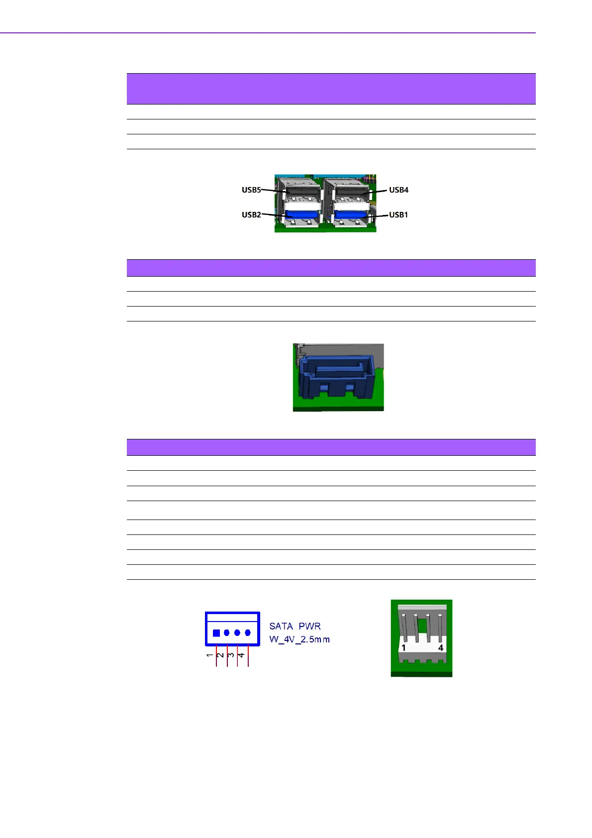 Table 2.14: USB1 + USB4: USB 3.0 (Type-A) & USB 2.0 (Type-A)