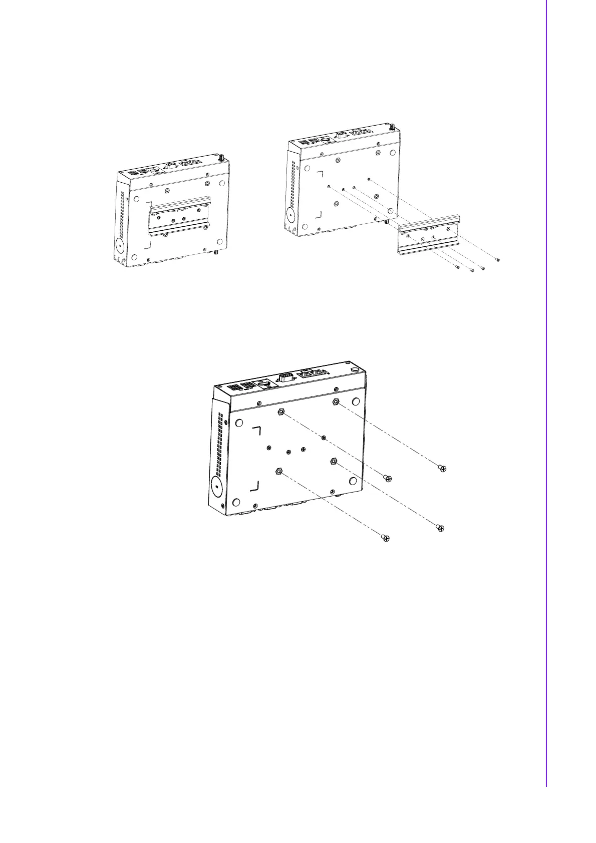 2. Screw back the din rail bracket with the din rail screws.