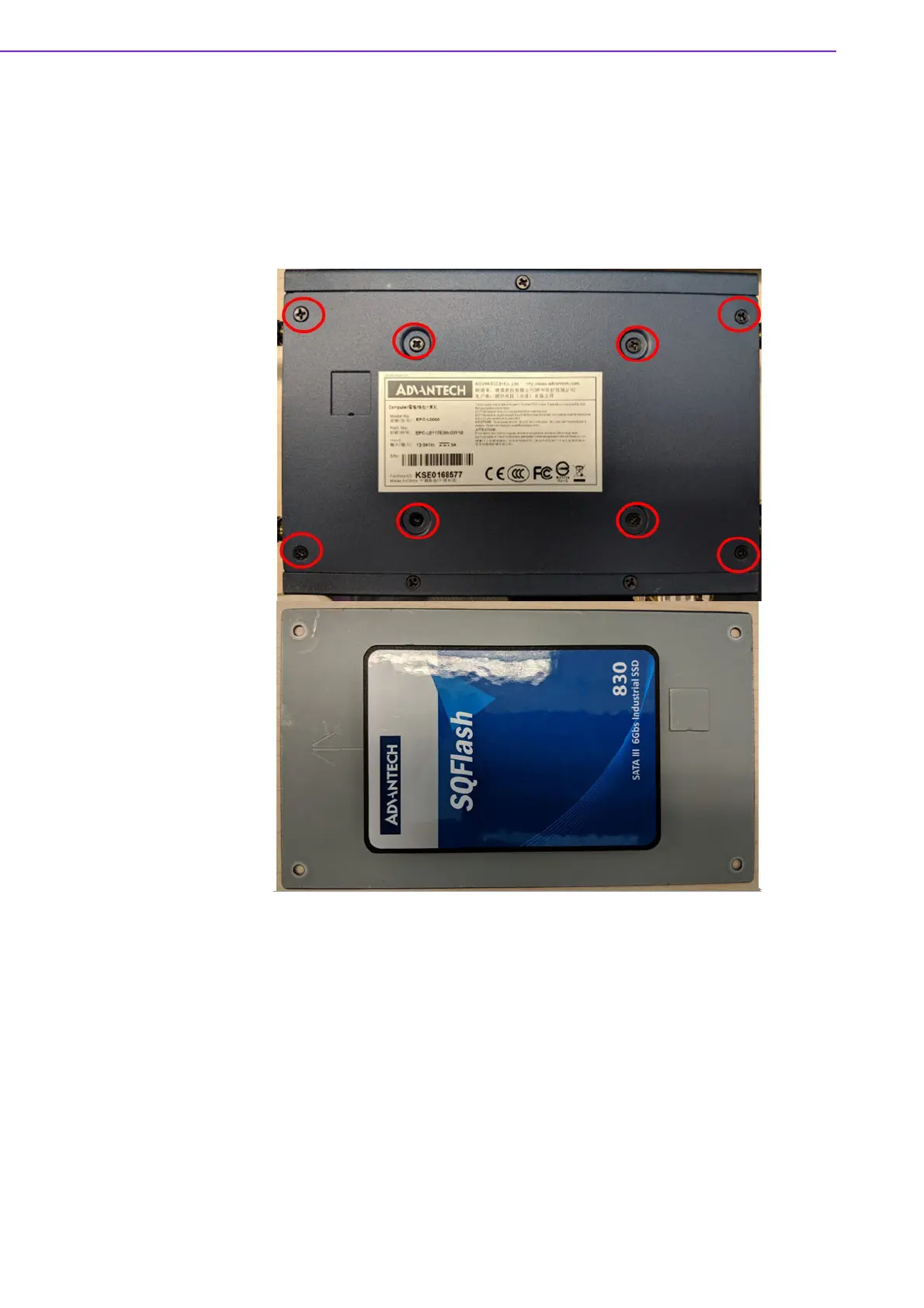 2. Secure the 2.5" SATA HDD onto the bottom cover. The screws are in the