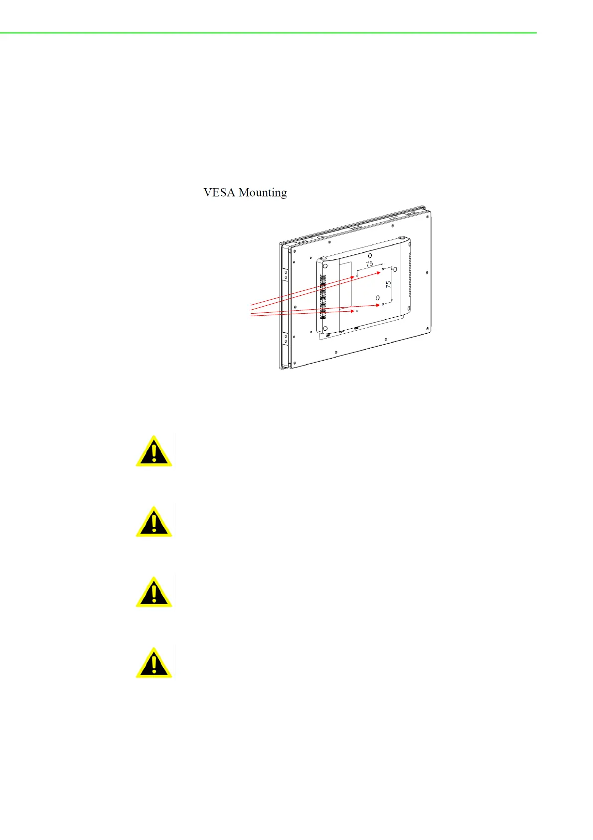 如希望采用 VESA 安装方式,FPM-200 系列为 VESA MIS-D, 100/75, C 合规显示器,