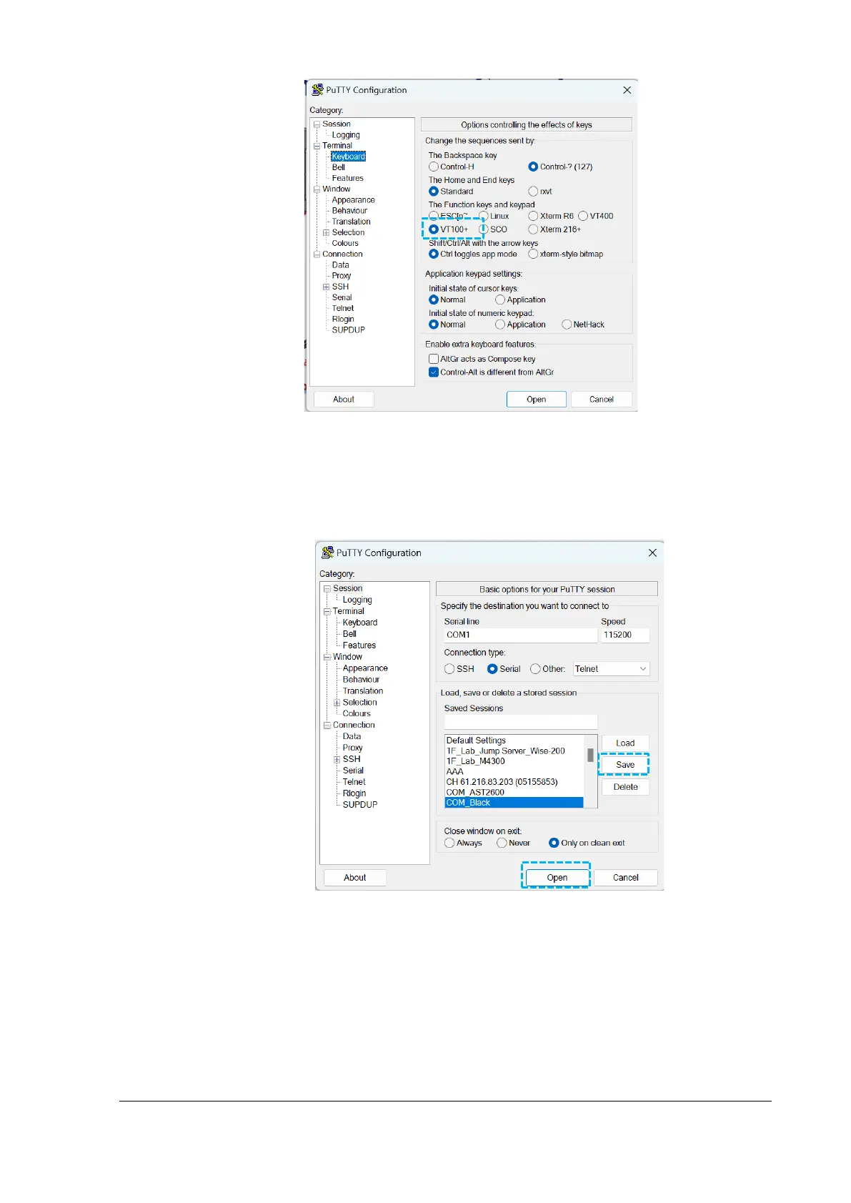 G. Click the “Open” button and a PuTTY terminal screen will be displayed. If you wish to retain