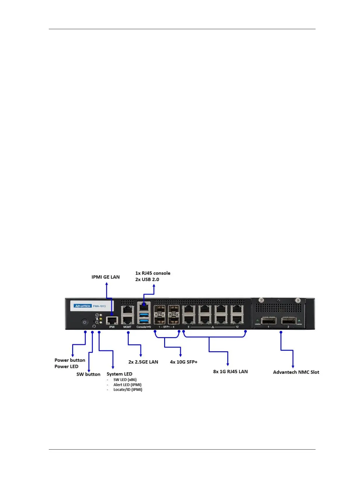 FWA-1013 platform integrates 1G/2.5G/10GbE wired networking ports, IPMI interfaces and unique