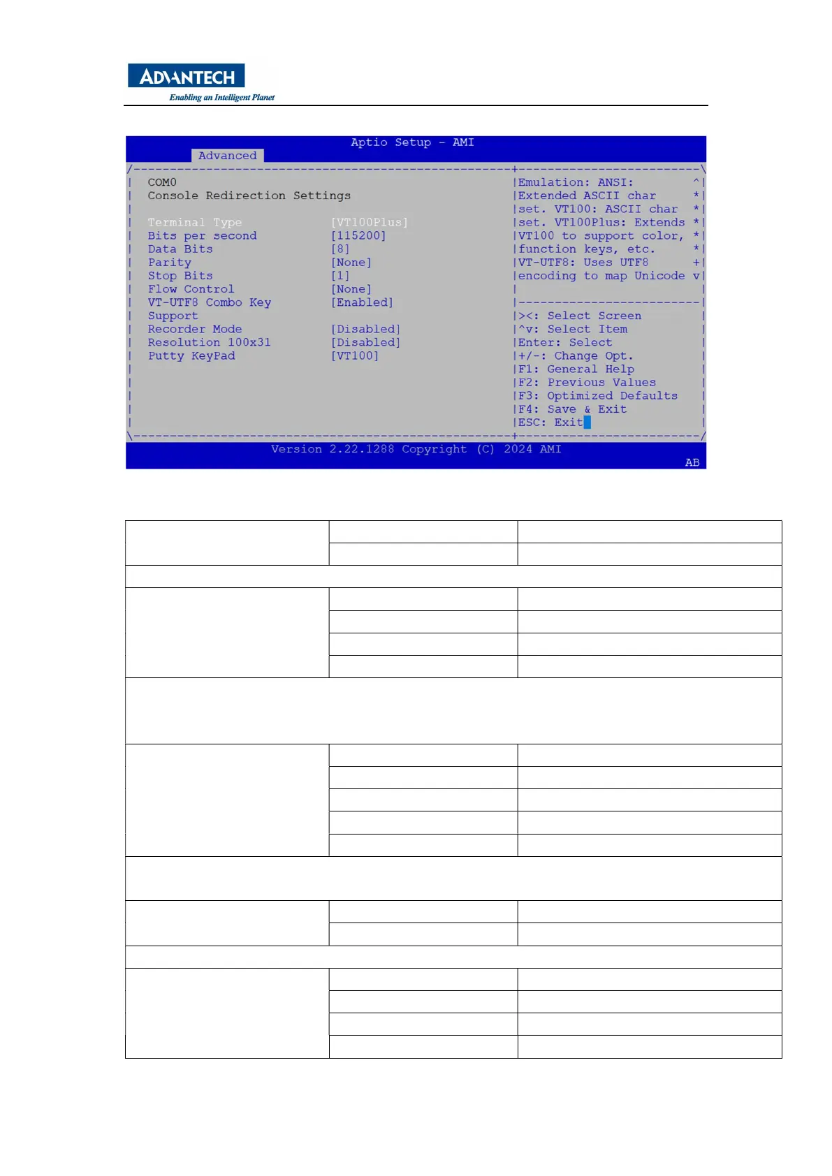 This is configuration table of Console Redirection Settings