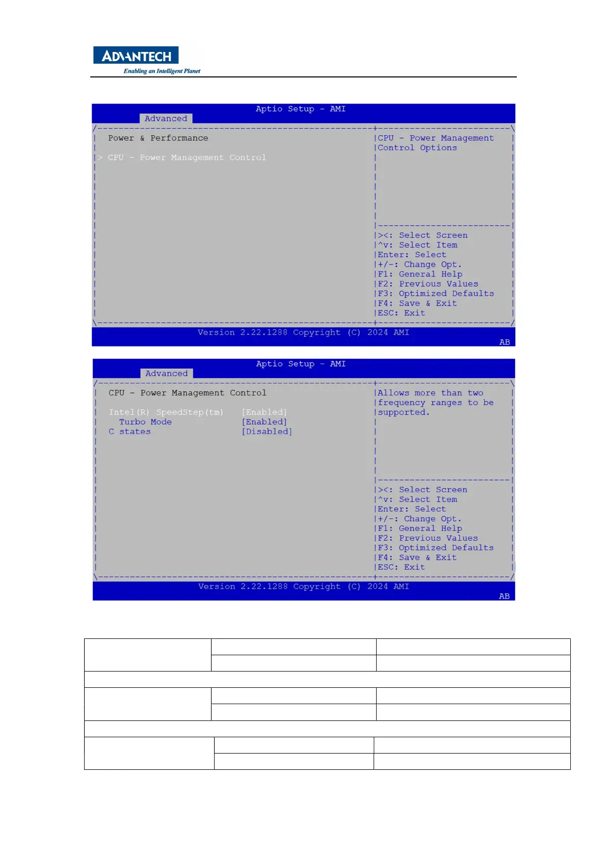 This is information table of CPU Power Management Control