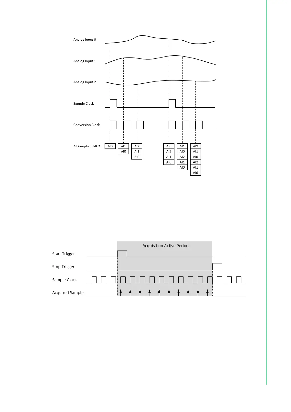 input sample. The acquisition active period lasts until a stop trigger is received, which