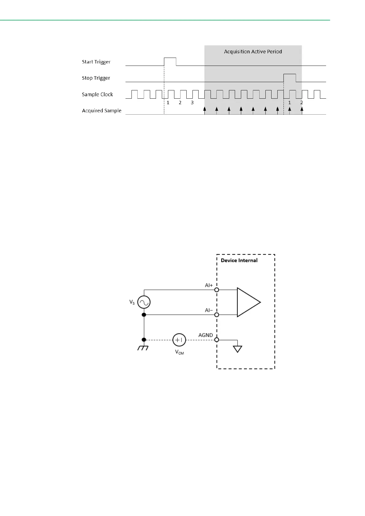 Figure 3.4 Start and stop of the analog input acquisition with delay.
