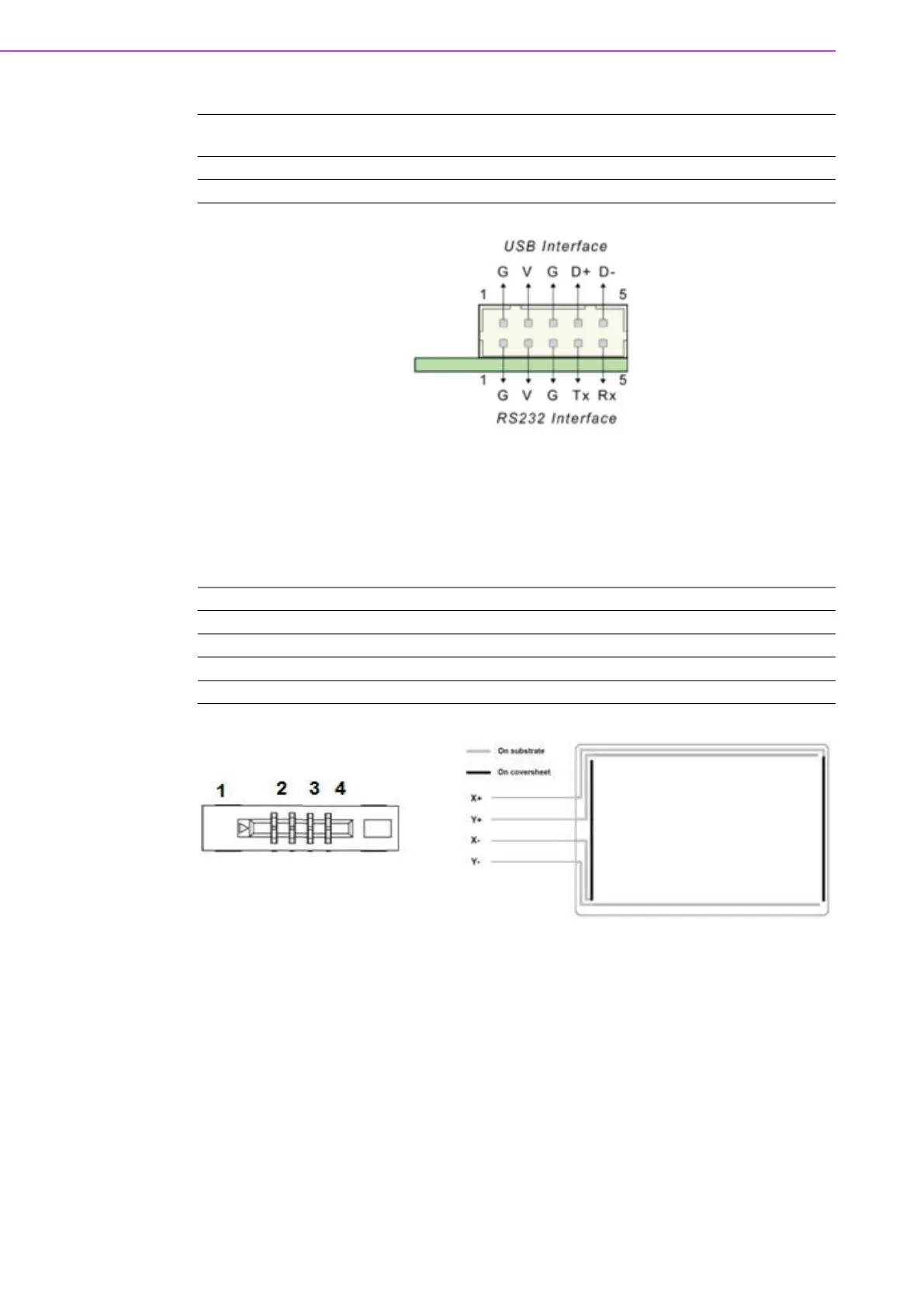 4-Wire touchscreen ZIF connector 4-Wire screen viewed from the cover sheet side