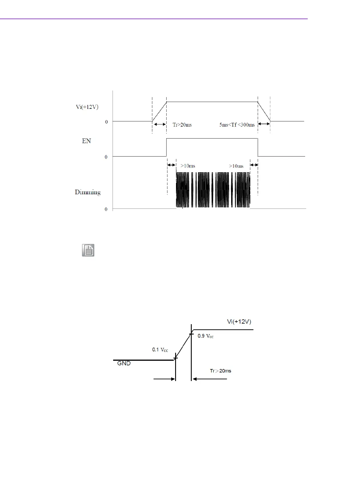 Turn ON sequence: Vi(+12V) → EN → Dimming