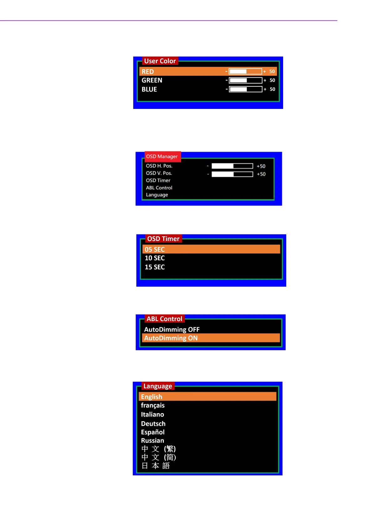3.2.7.1 User color adjustment (Red/Green/Blue)