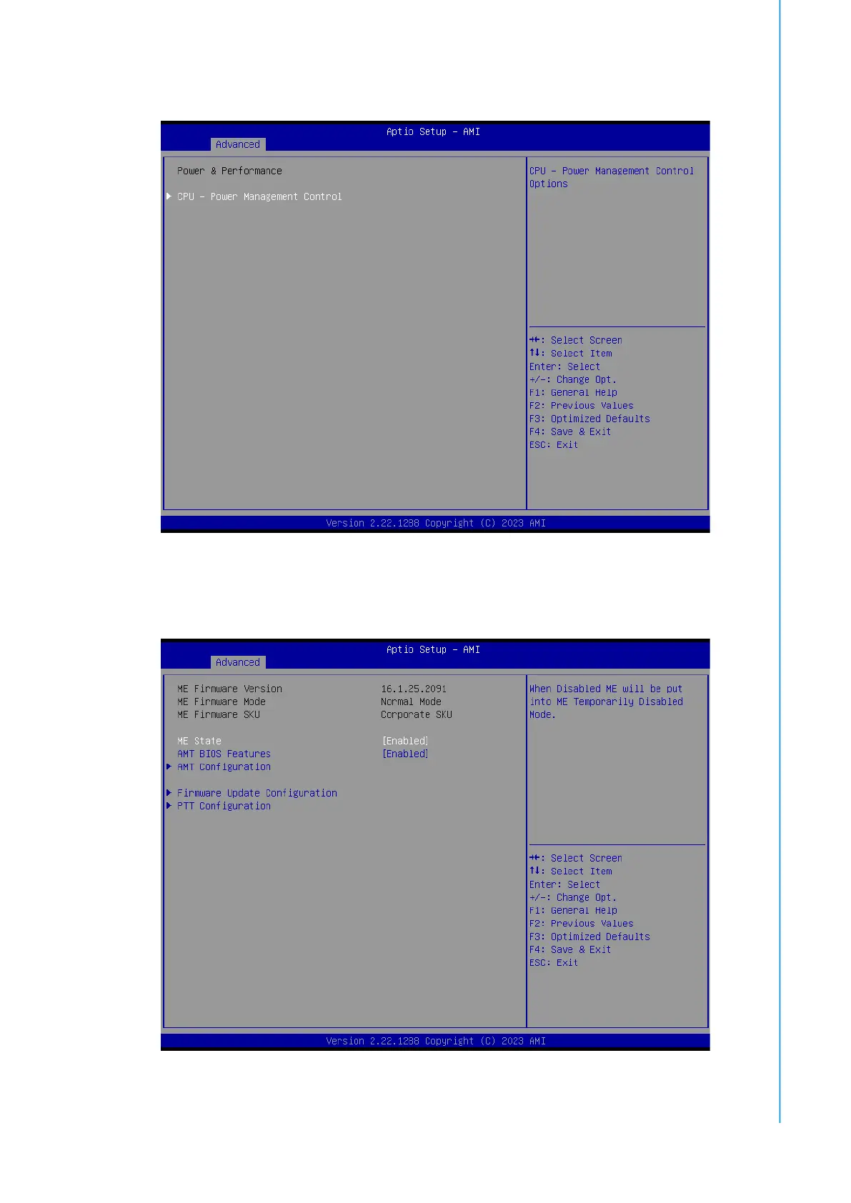 This page shows the version, mode, type, SKU of ME firmware in BIOS.