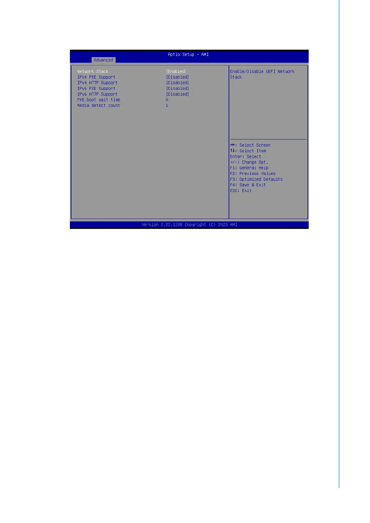 Enable/Disable UEFI Network stack. The default setting is [Disabled].