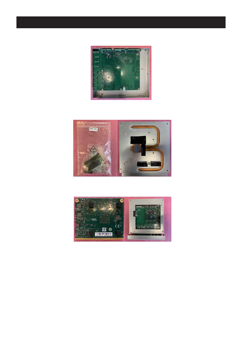 3. 将MXM-1050标示PE袋里里面取出4个橡胶垫安装在GPU模块上(MXM-1060 GPU模块需要安装6个橡胶垫),再将GPU模块安装