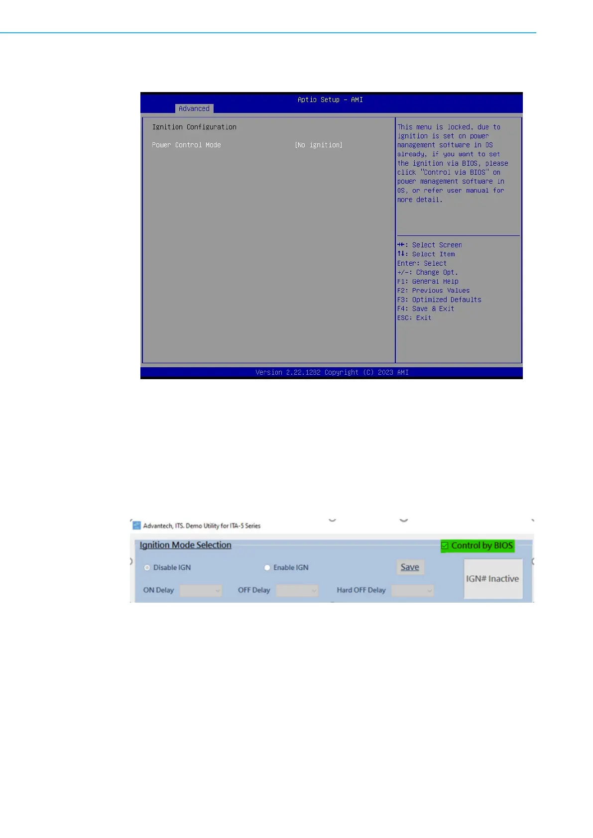 1. if menu is locked, ignition is set by “Demo Utility” software in OS already, if igni-
