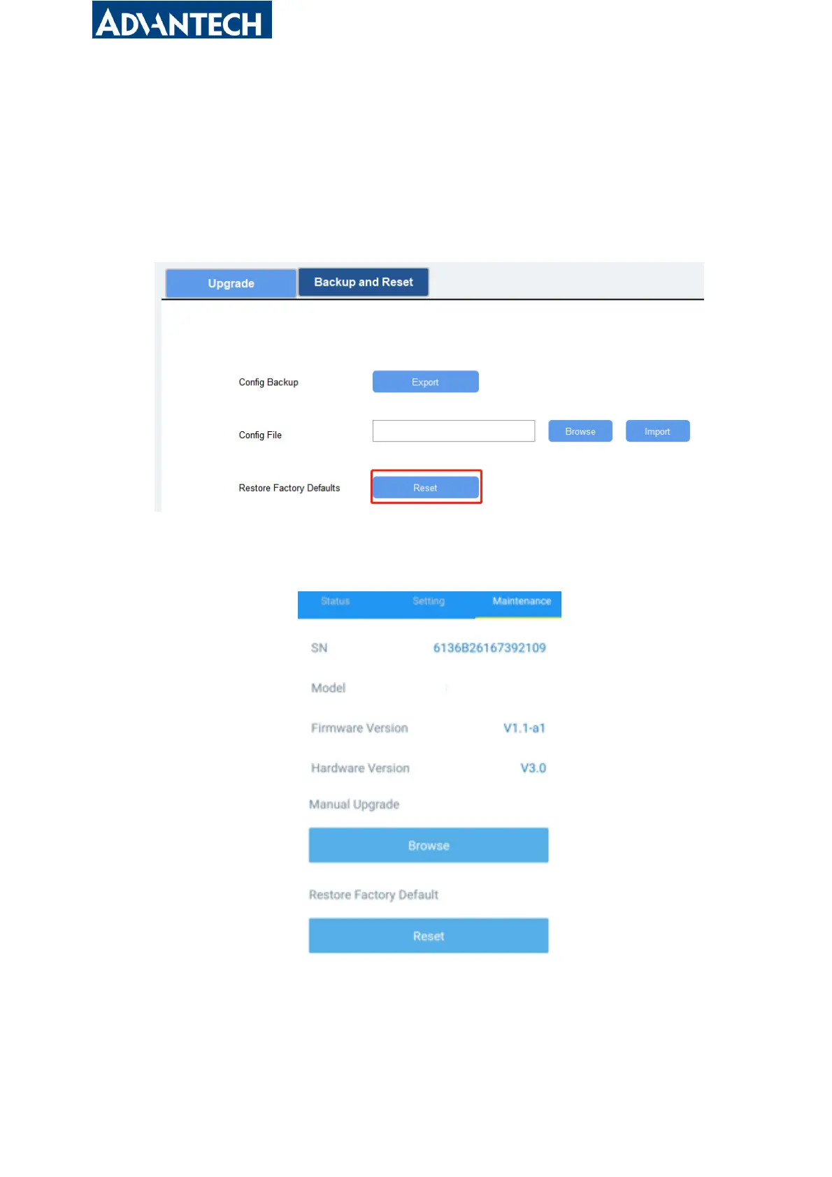 Via ToolBox Software: Go to “Maintenance->Backup and Reset” to click “Reset”.