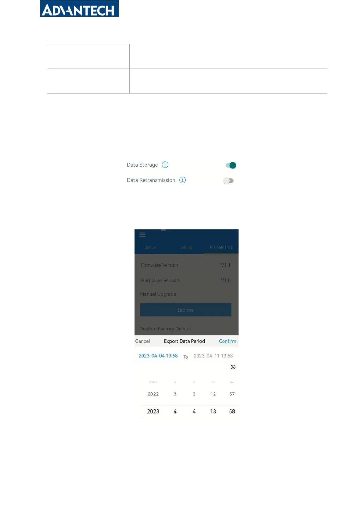 2. Go to Device > Maintenance of ToolBox App, click Export, then select the data time period