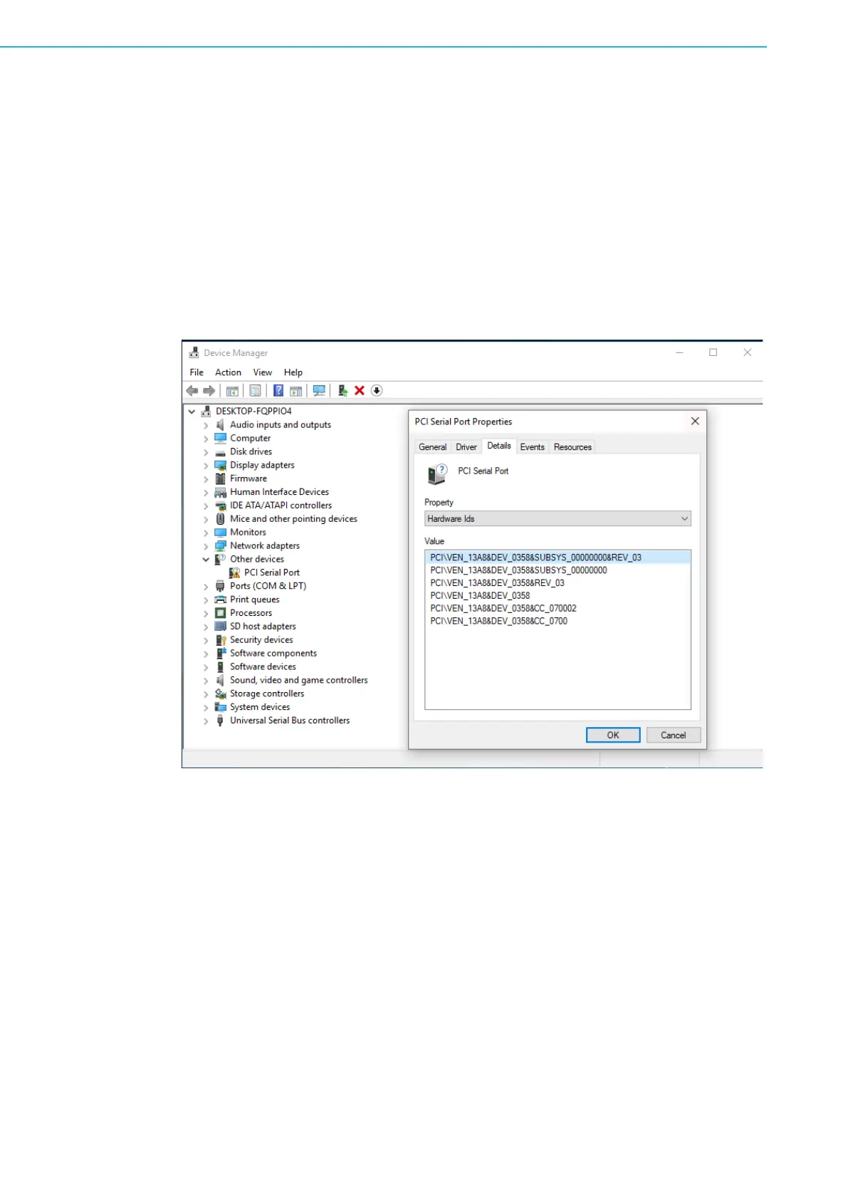 Check whether the “Vendor ID” and “Device ID” in “Properties / Detail” are con-