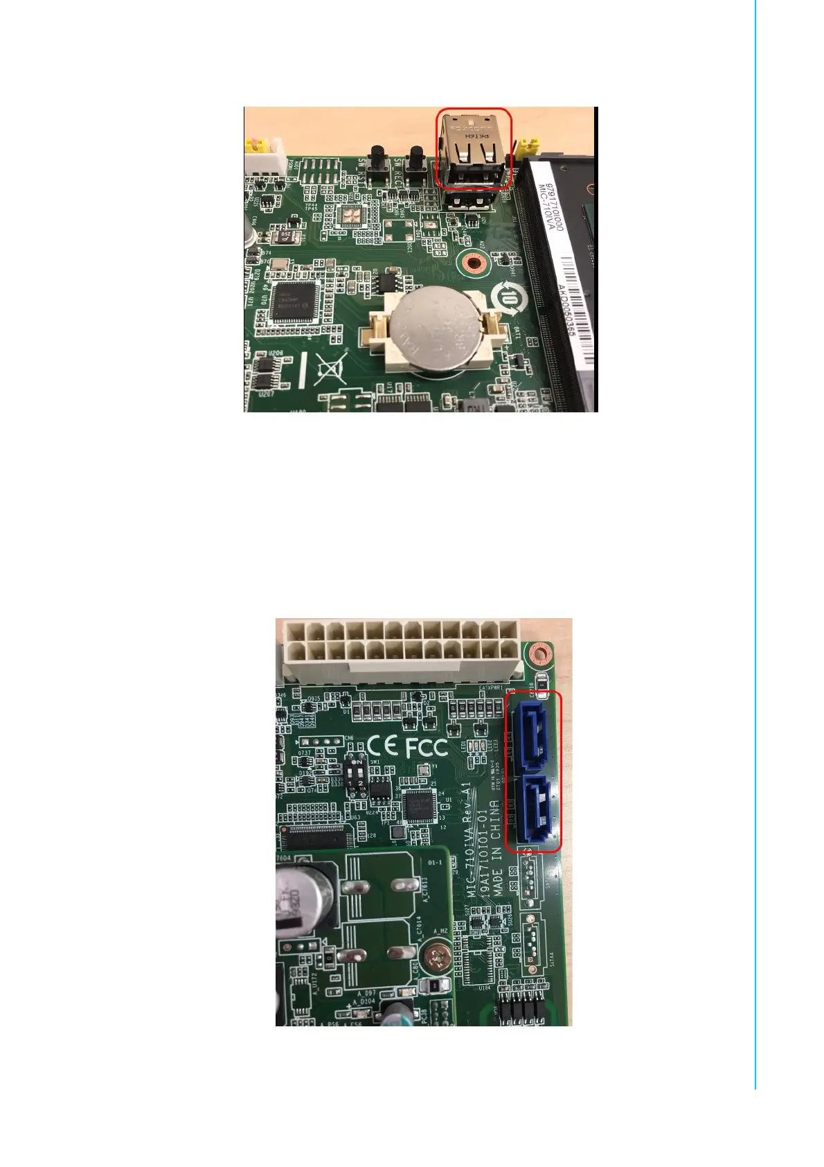 MIC-710IVA 在本机的内部提供了 2 组 SATA 端口供做硬盘连接安装使用。
