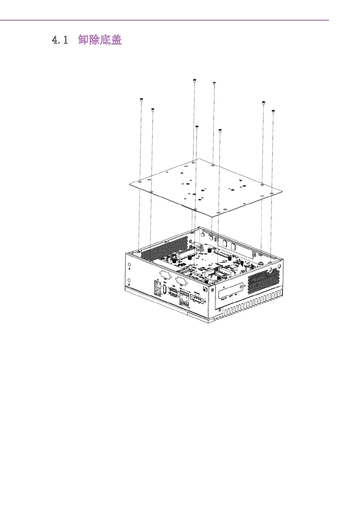 卸除 MIC-713 盖前须先移除 8 颗螺 ( 华料号 1930007979),螺丝位置示意如