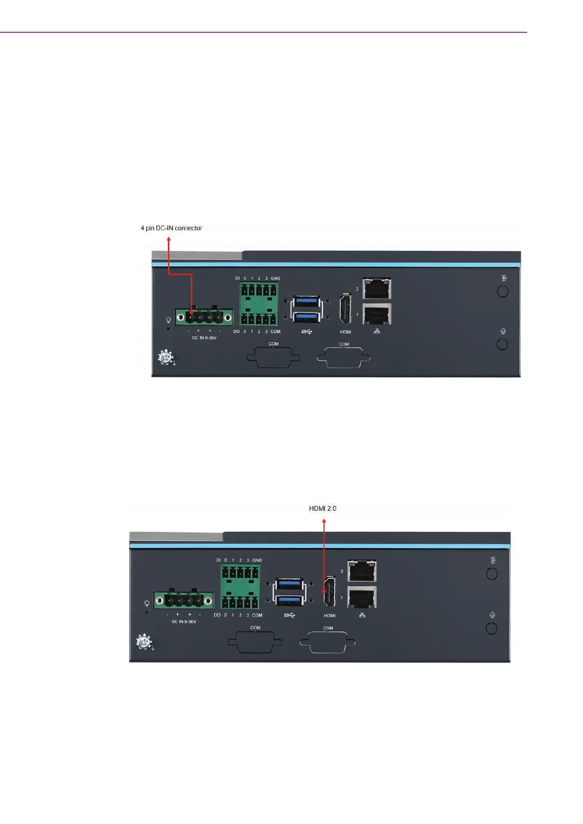 The MIC-713 provides an HDMI 2.0 type-A connector for displaying video. The maxi-