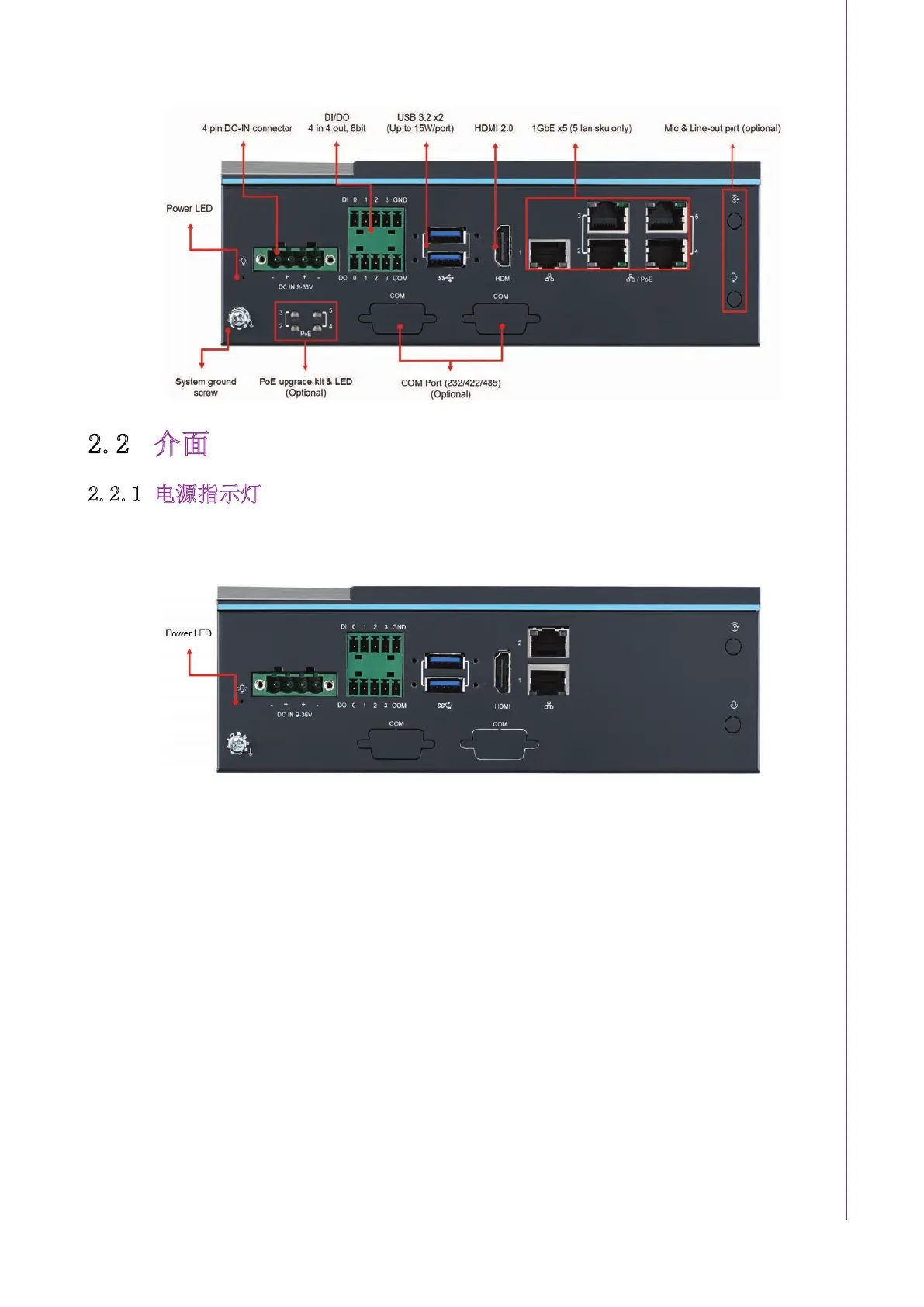 MIC-713 前面板设有电源 / 指示灯该灯可指示系统开机状态 绿色 LED)和系