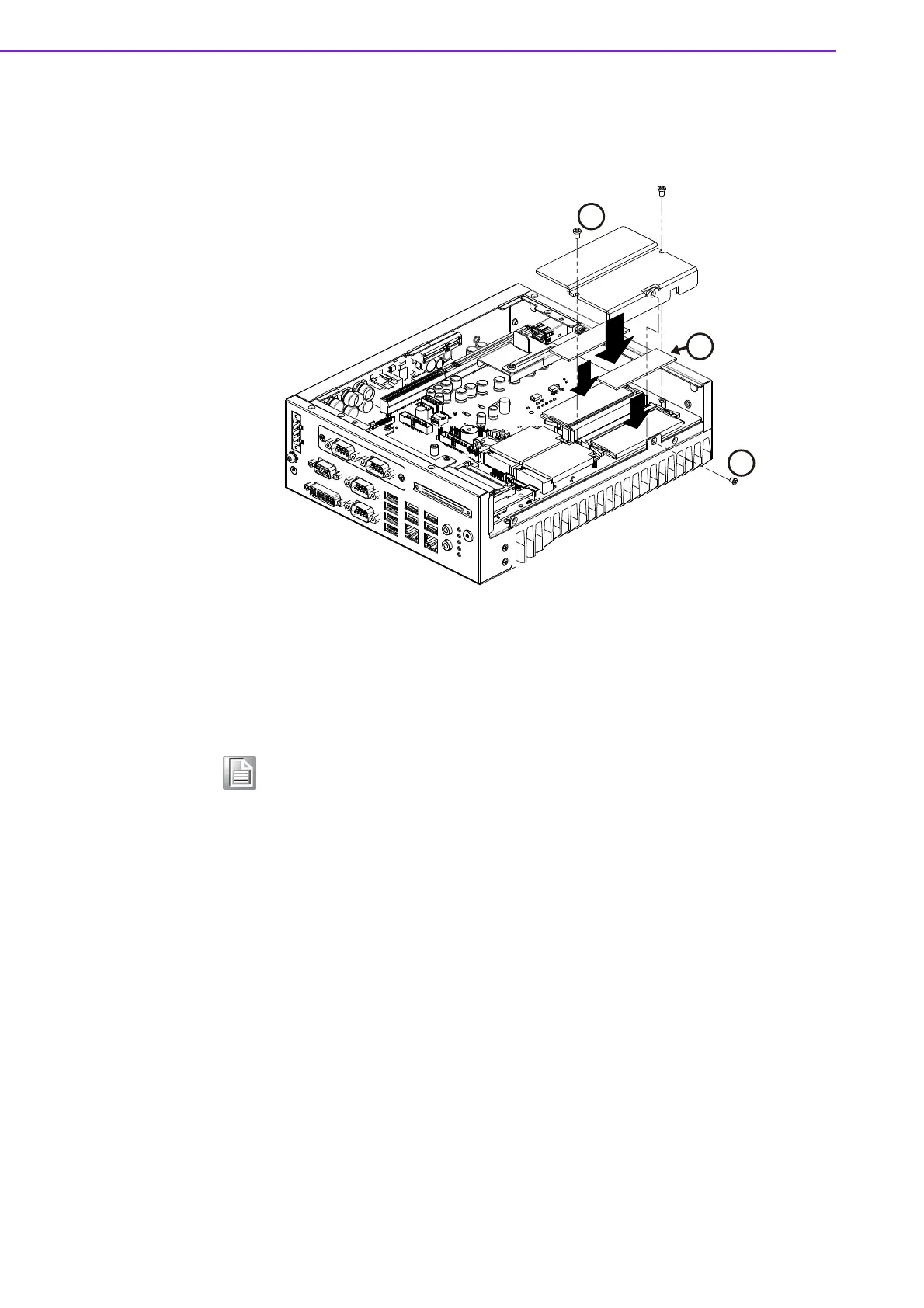 2. Install the module in Mini PCIe socket 1, or m-SATA in Mini PCIe socket 2 and