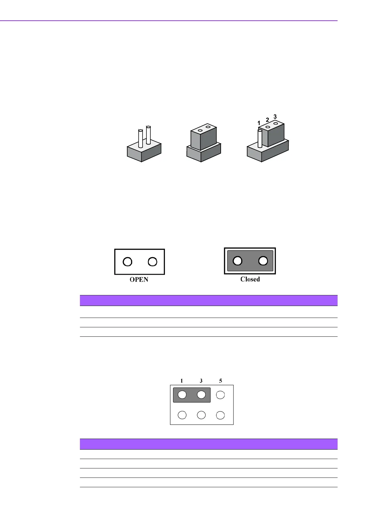 the pins to connect them. To “close” a jumper, you connect the pins with the clip. To