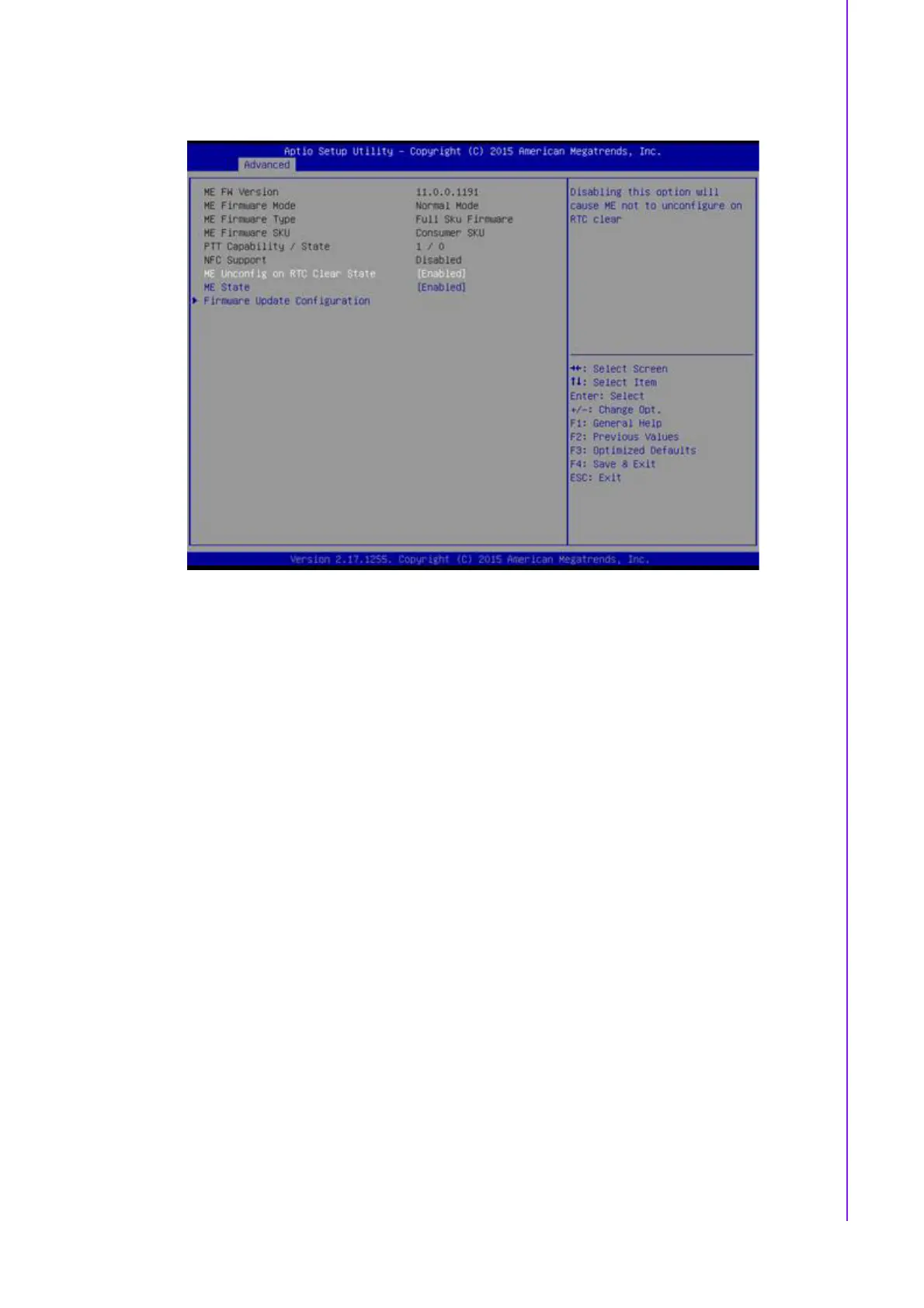 Disabling this option will cause ME not to unconfigure on RTC clear.