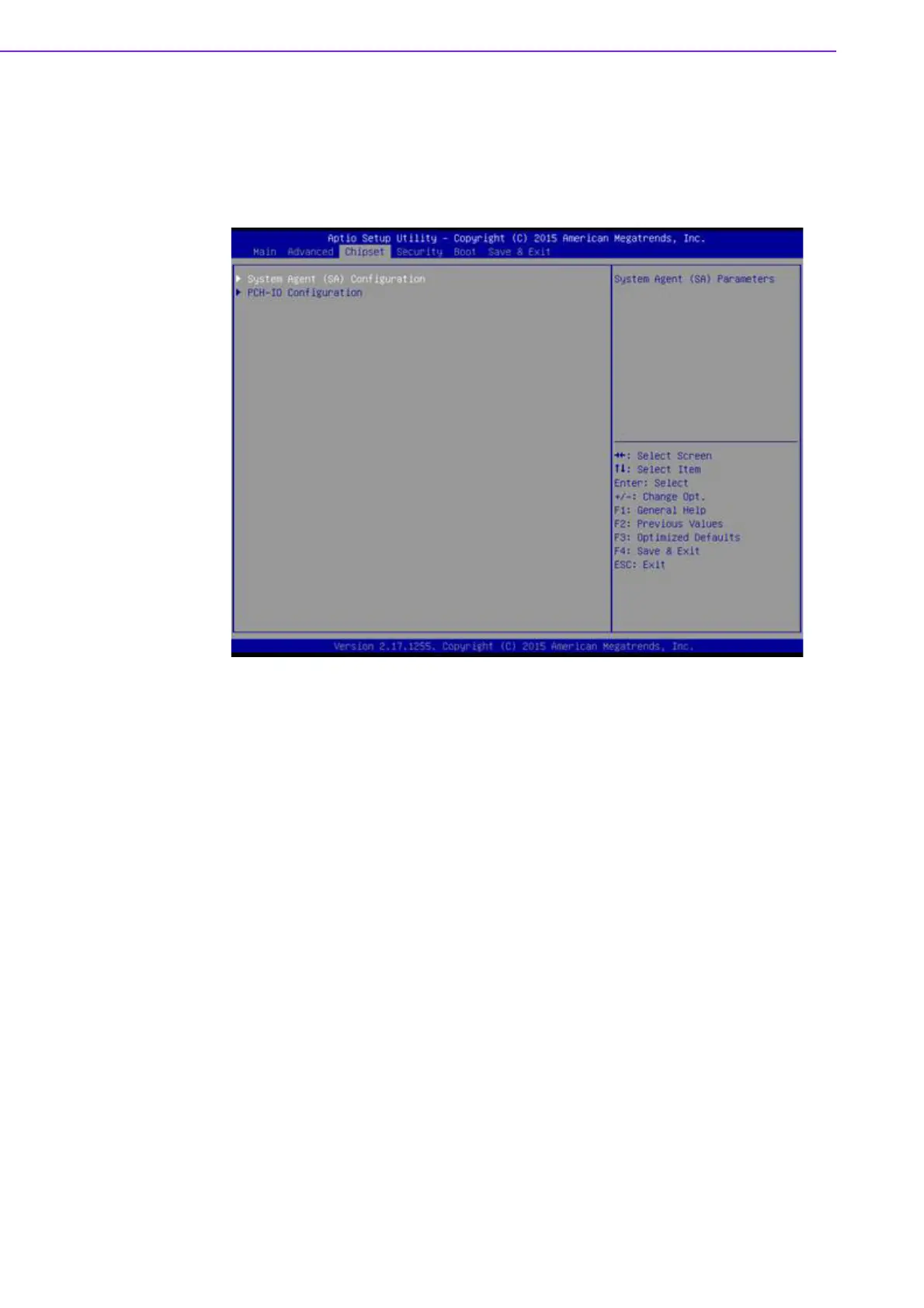 Select the Chipset tab from the MIO-5272 setup screen to enter the Chipset BIOS