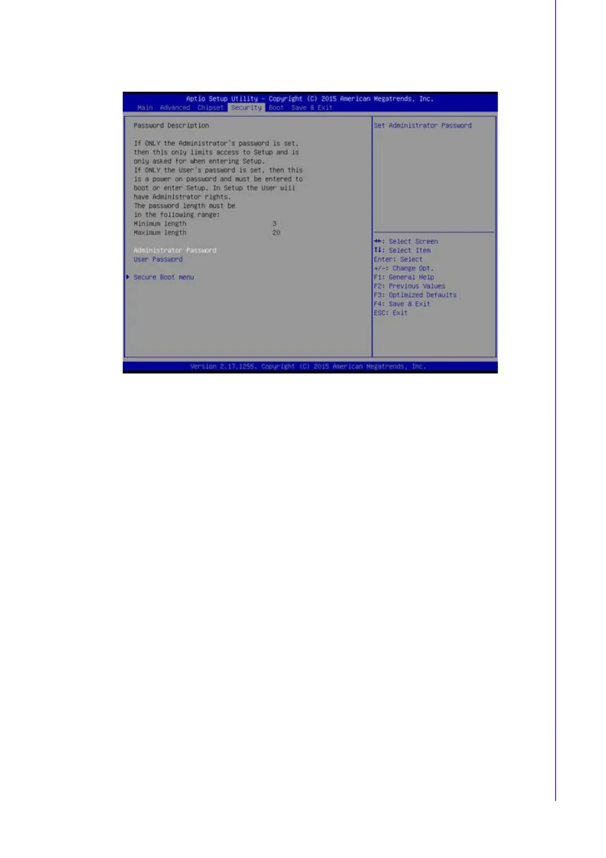 Select Security Setup from the MIO-5272 Setup main BIOS setup menu. All Security