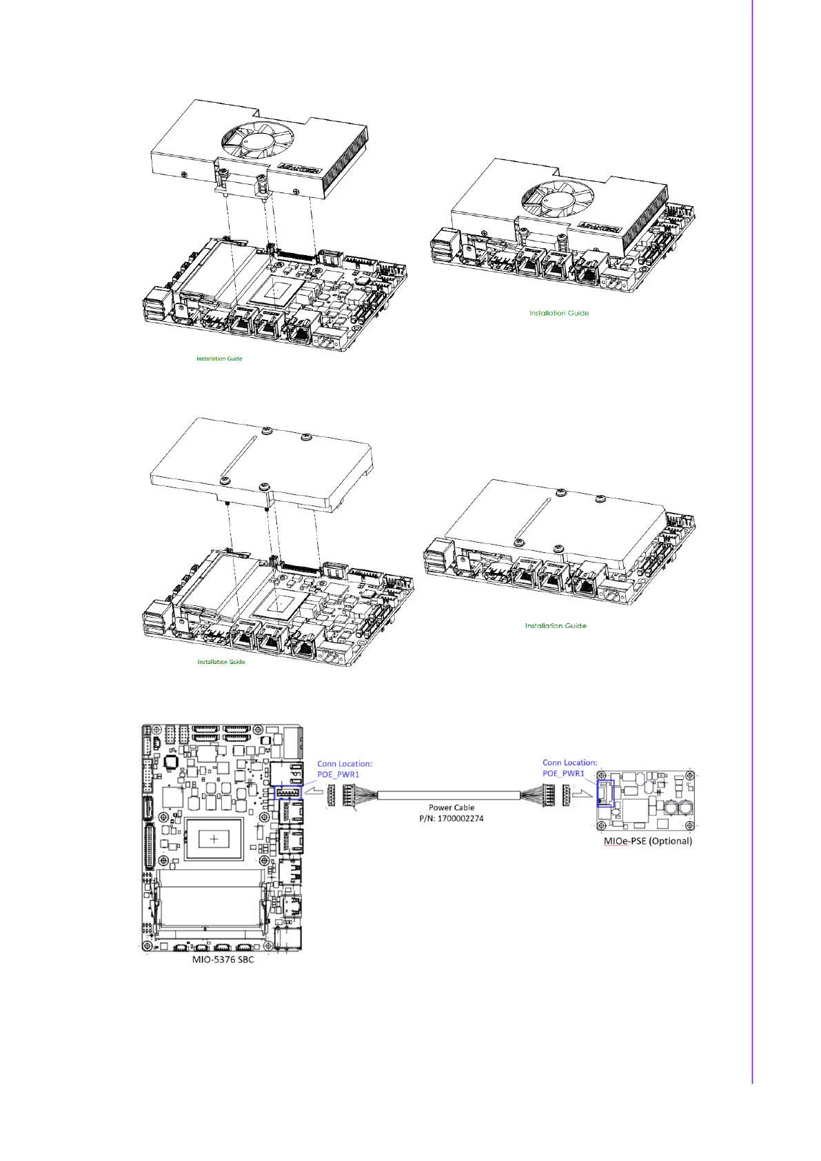 Figure 2.10 MIO-5376 and MIOe-PSE (Optional PoE Module) Assembly