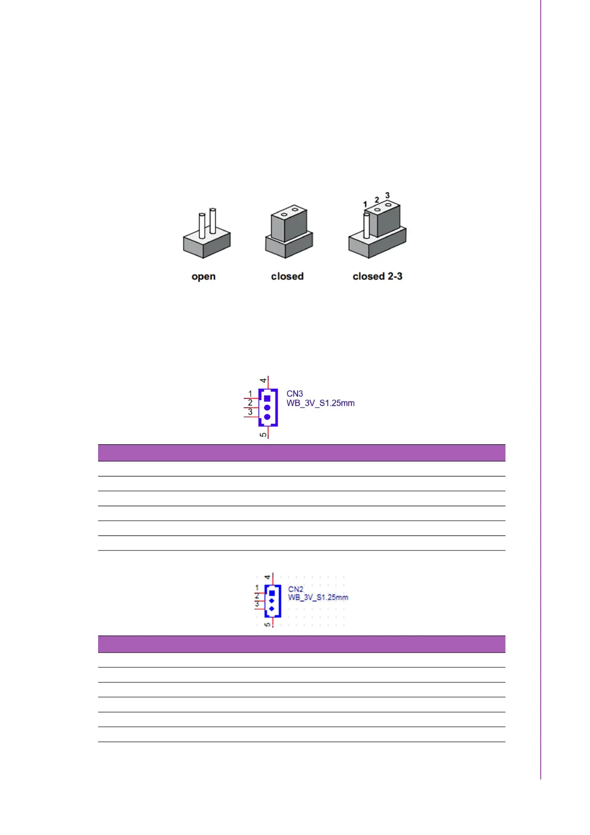 the pins to connect them. To “close” a jumper, you connect the pins with the clip. To