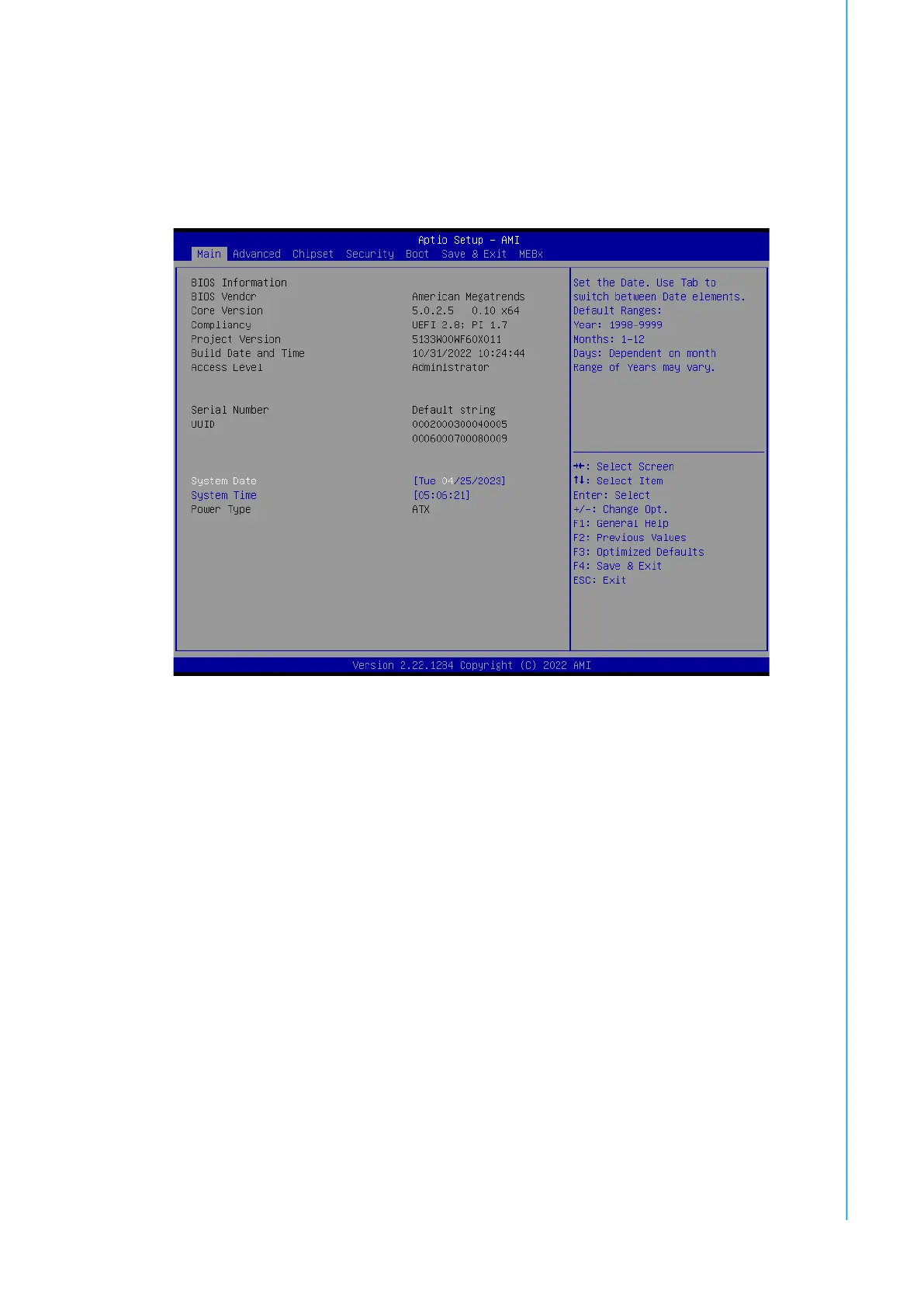 Set the Date. Use Tab to switch between Date elements. Default Ranges: Year: