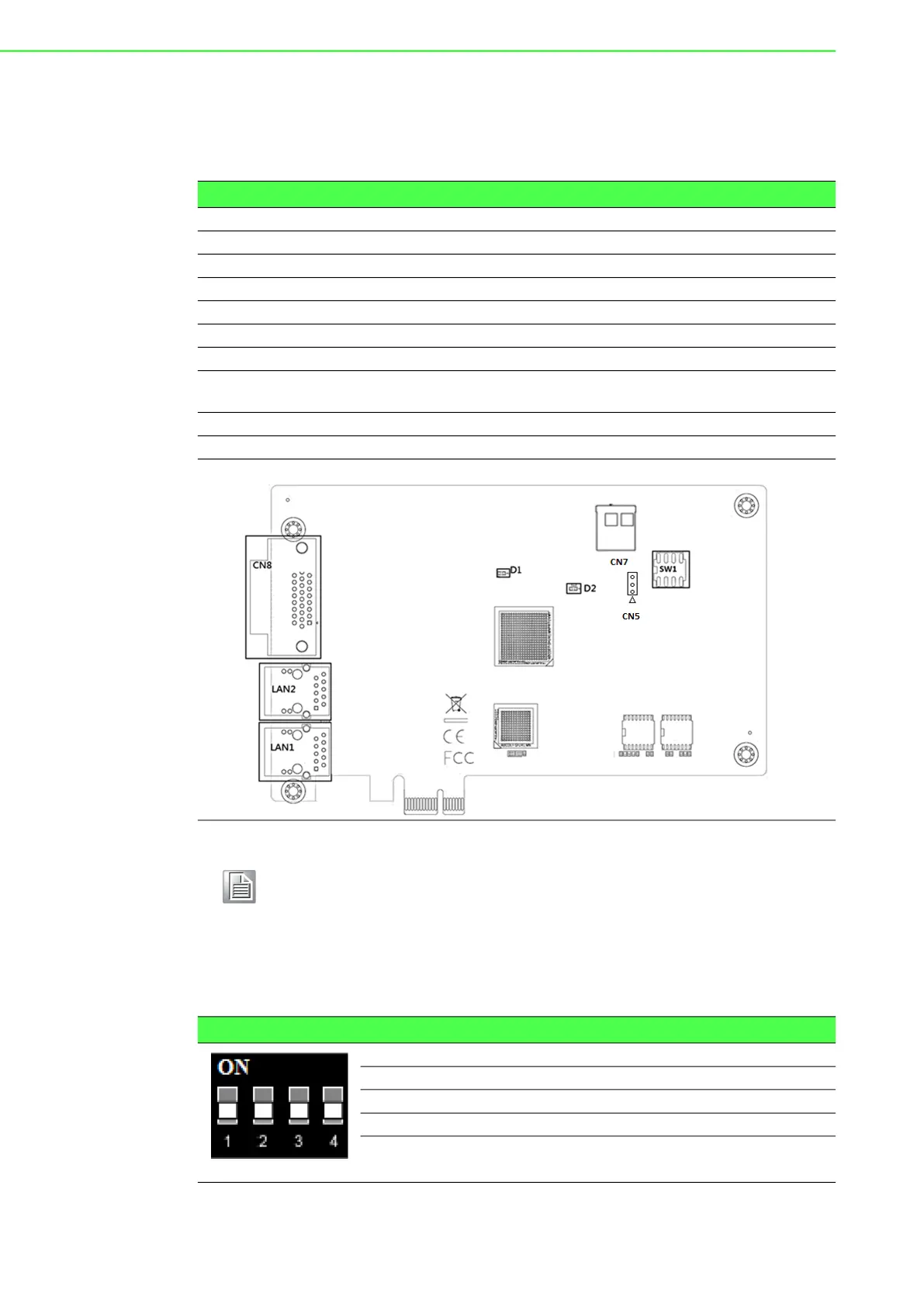 Table 3.1 shows location of the connectors and switches of the PCIE-1203.
