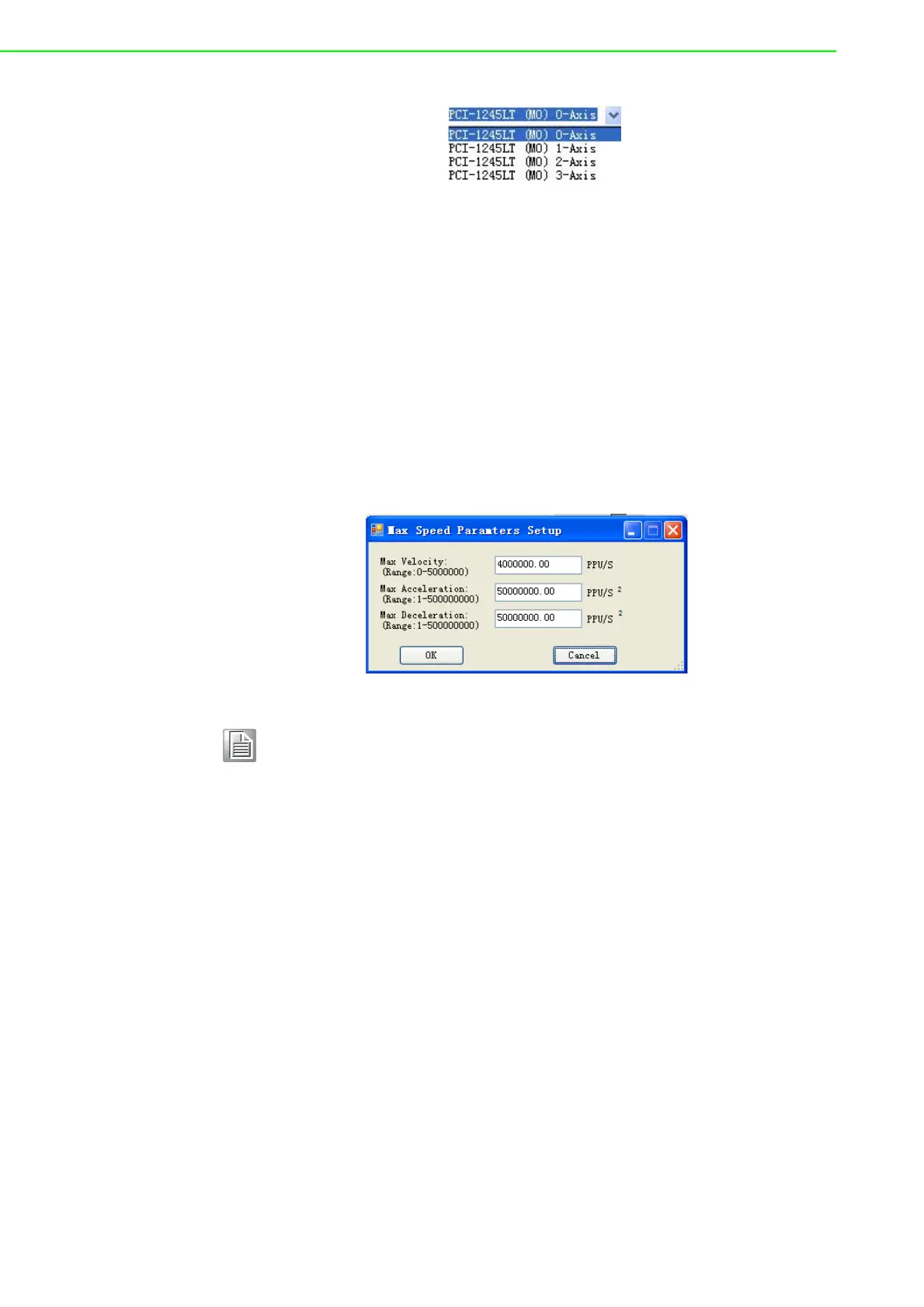 单击 [View/Set Range] 检查或设置最大速度、加速度和减速度。对话框如下所示。