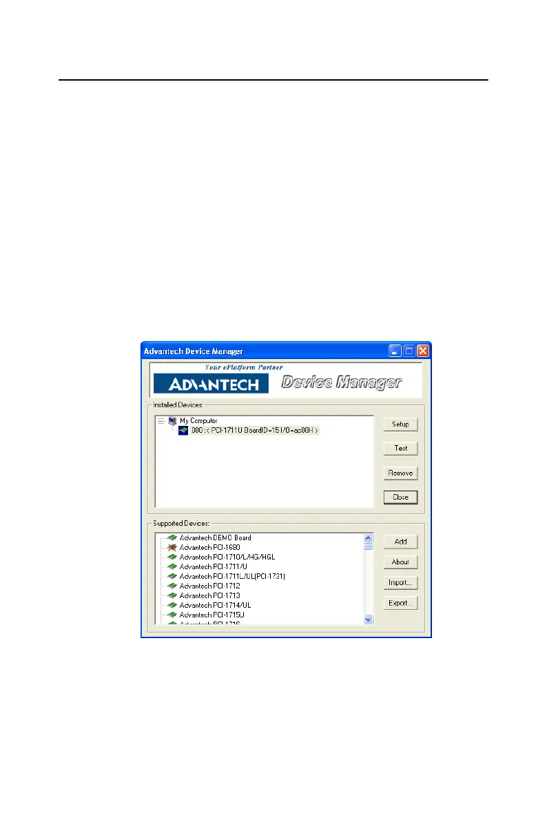 The Advantech Device Manager program is a utility that allows you to set