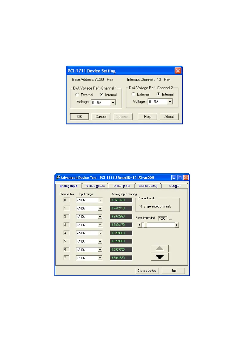 Device Setting dialog box (Fig. 2-4), you can specify the D/A volt-