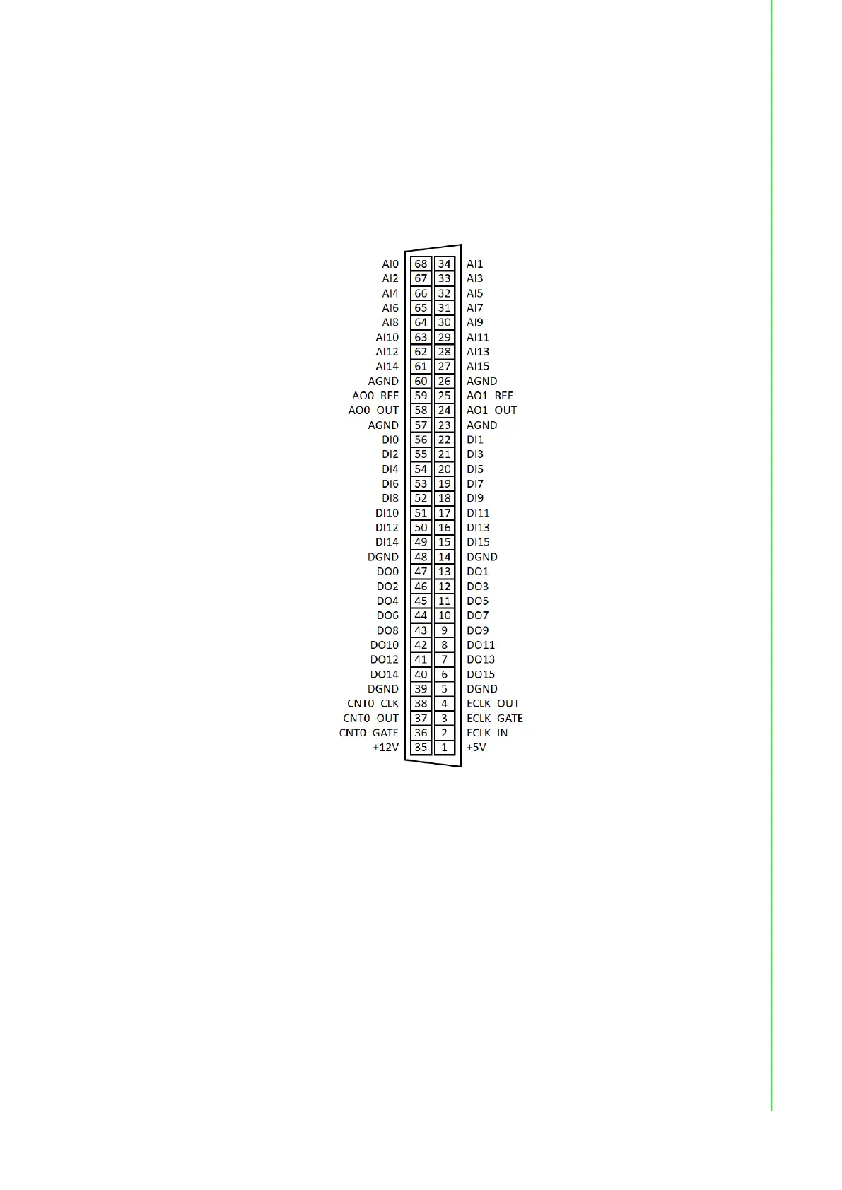 Figure 2.2 68-pin I/O Connector Pin Assignments