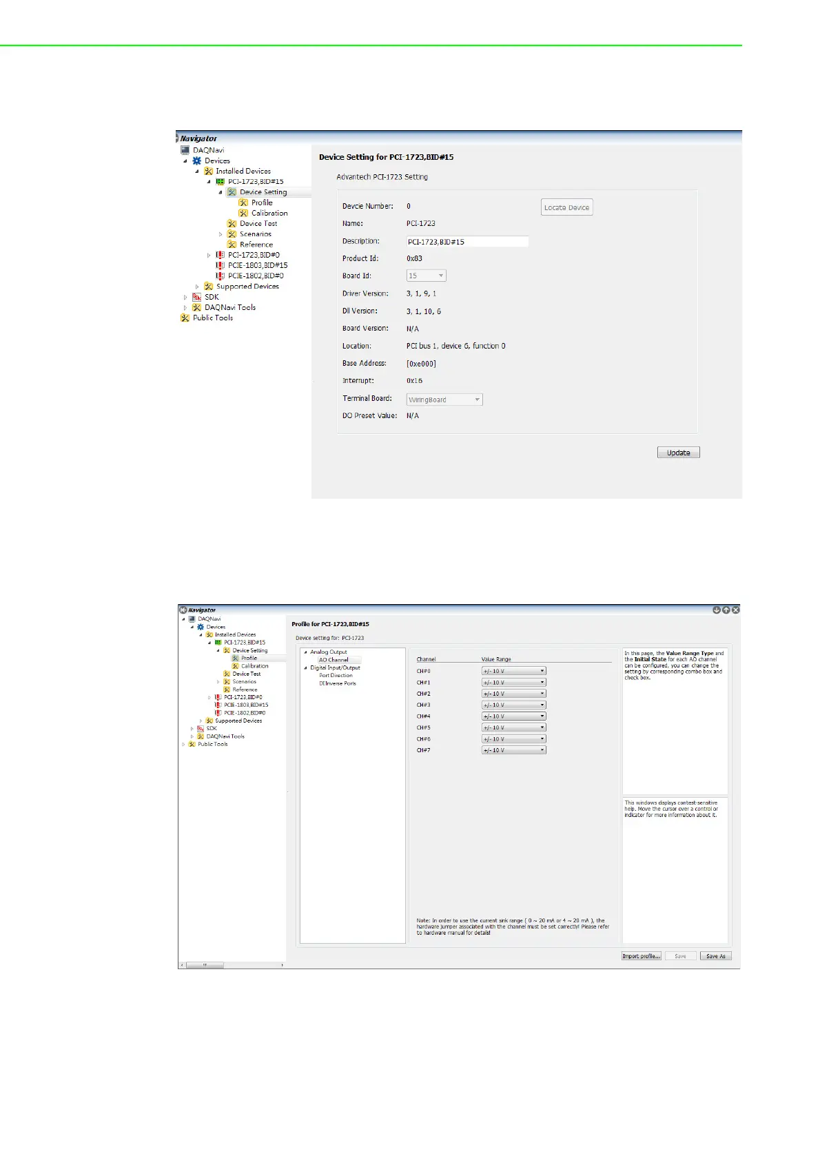 Figure 2.1 PCI-1723 Device Settings