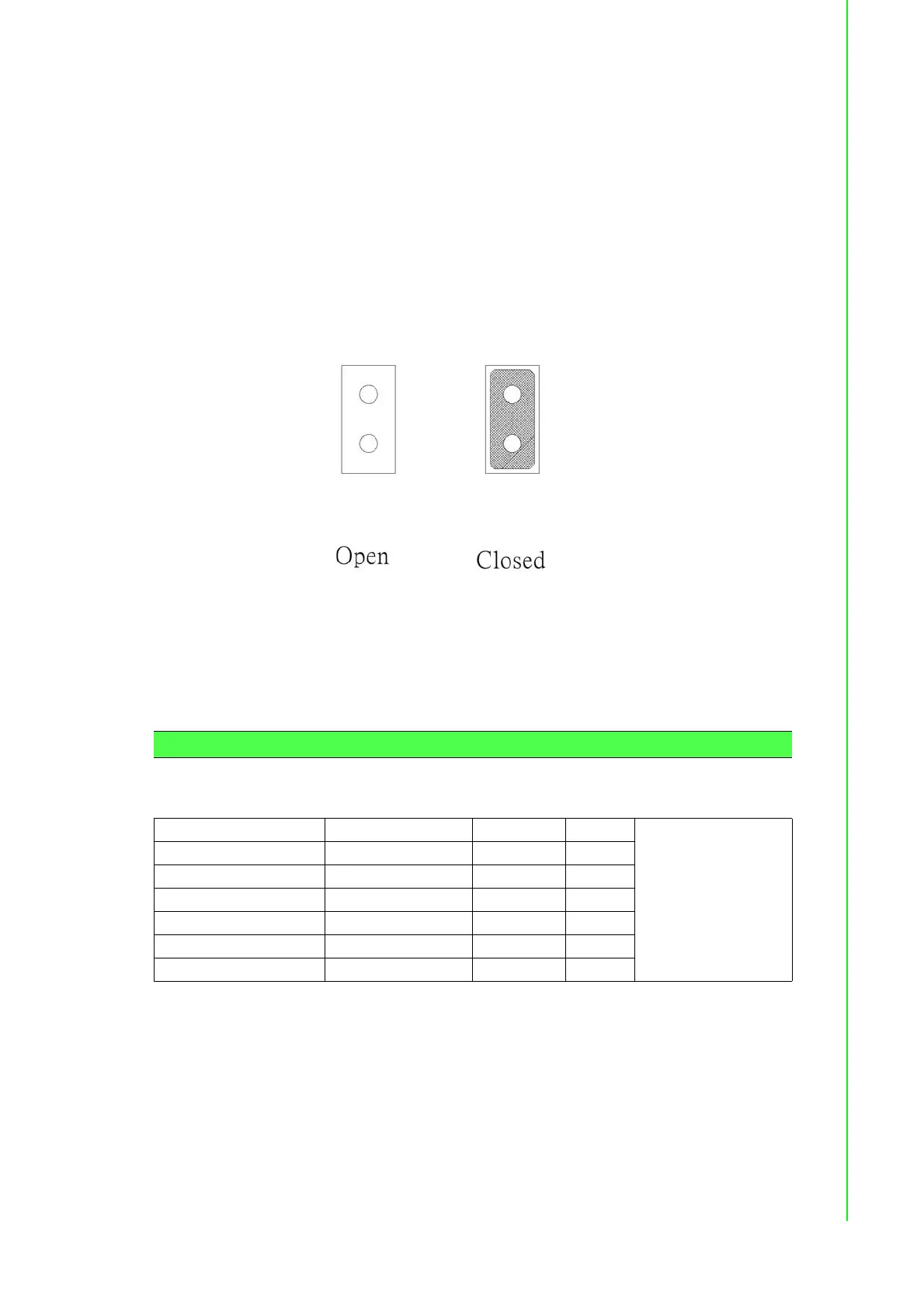 them. To “close” a jumper, connect the pins with the clip. To “open” a jumper, remove