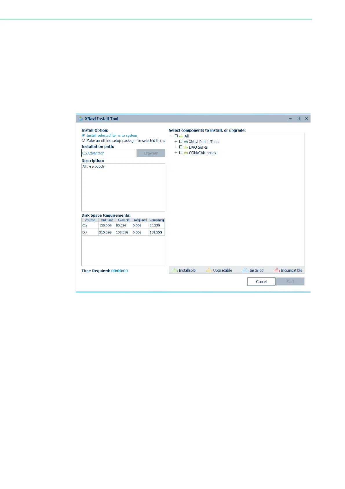 the selection, click “start” to begin the installation.