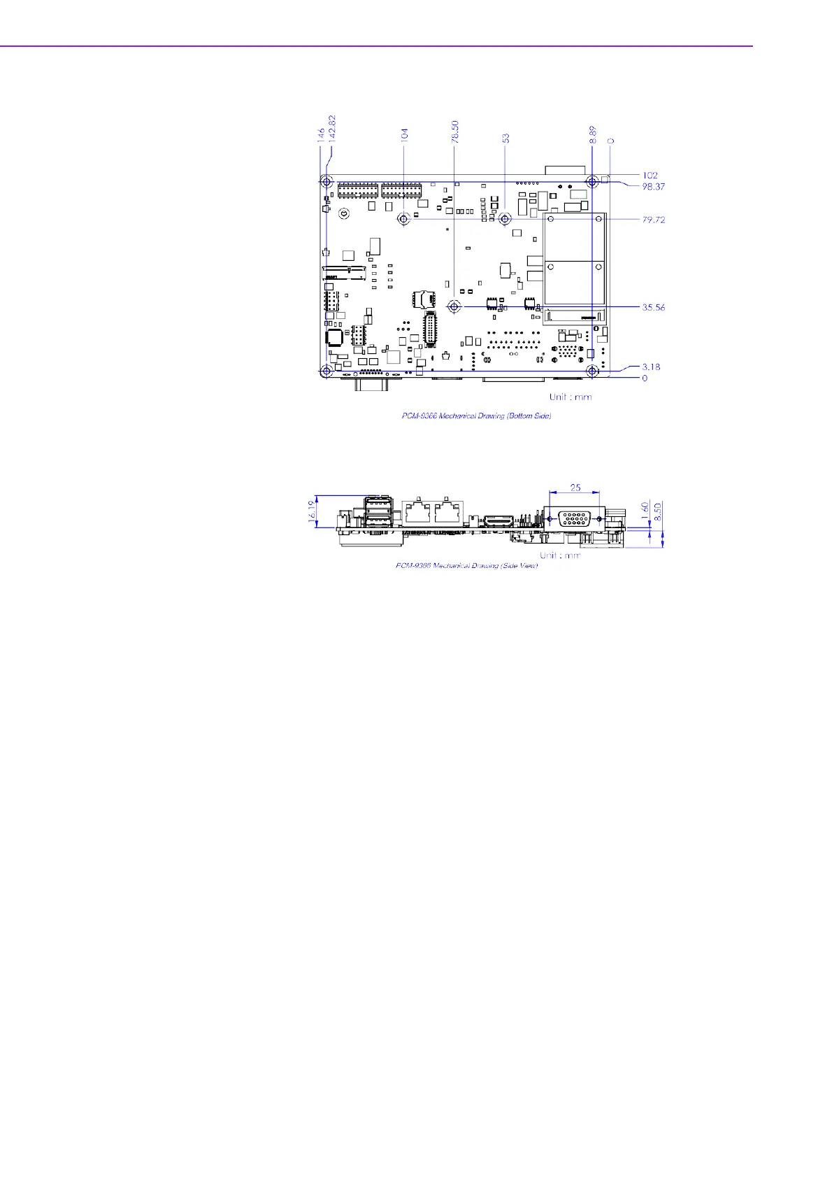Figure 1.2 PCM-9366 Mechanical Drawing (Bottom Side)