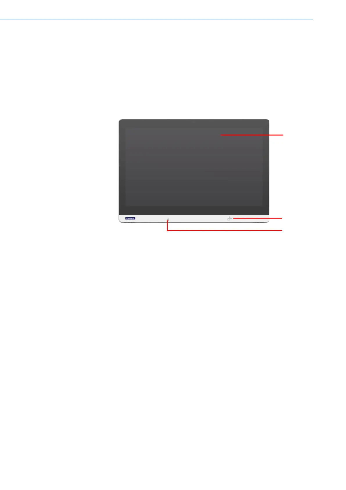 When you place the POC-821 upright on the desktop, its front panel appears as